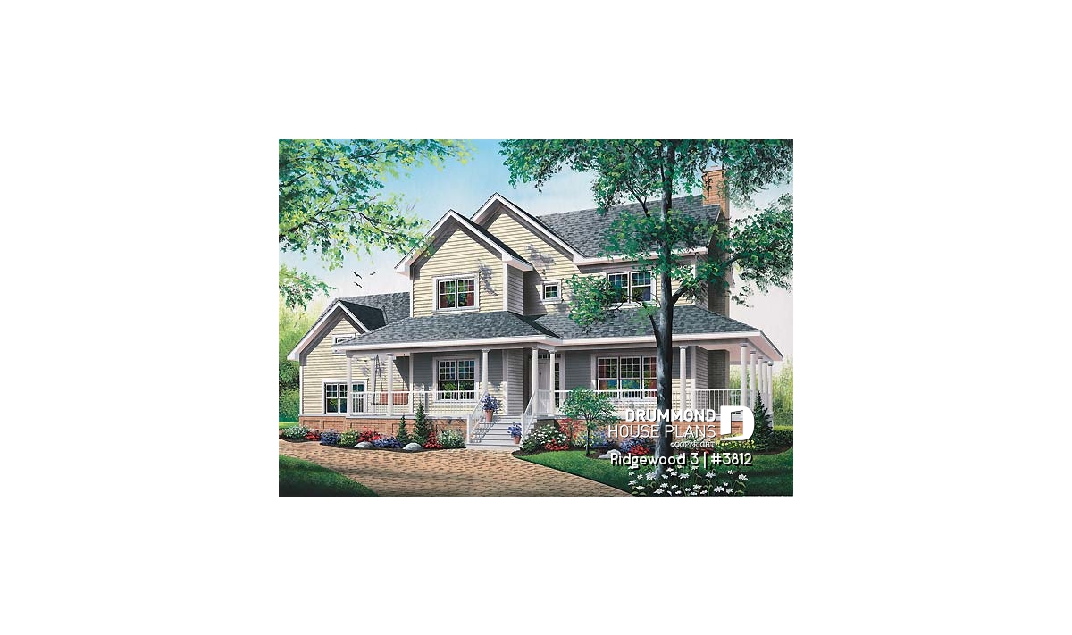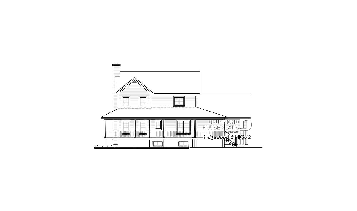 Designed from popular model 2853 whose notoriety no longer needs being said, more particularly with our American neighbours, this house distinguishes itself from the initial model (2853) with the replacement of the sunroom at the front by a covered gallery continuing on the left side as well as at the rear where it is enlarged in order to allow the occupants to share family meals together, sheltered from the elements.