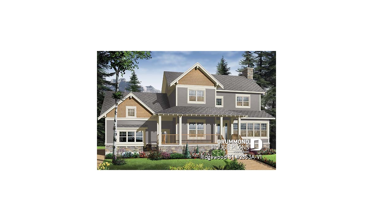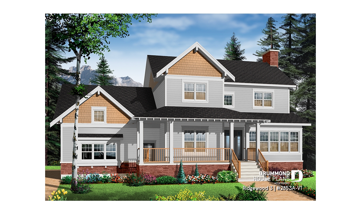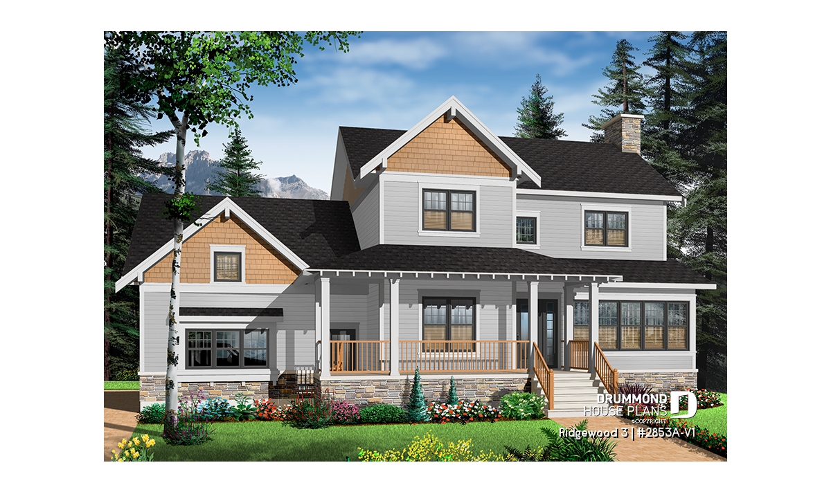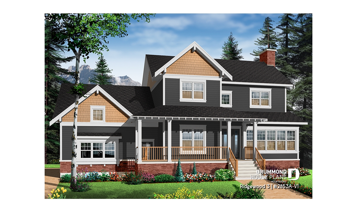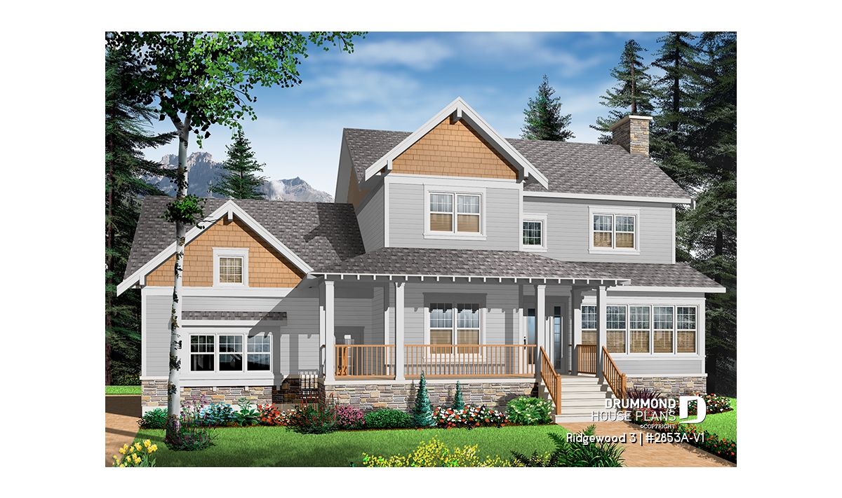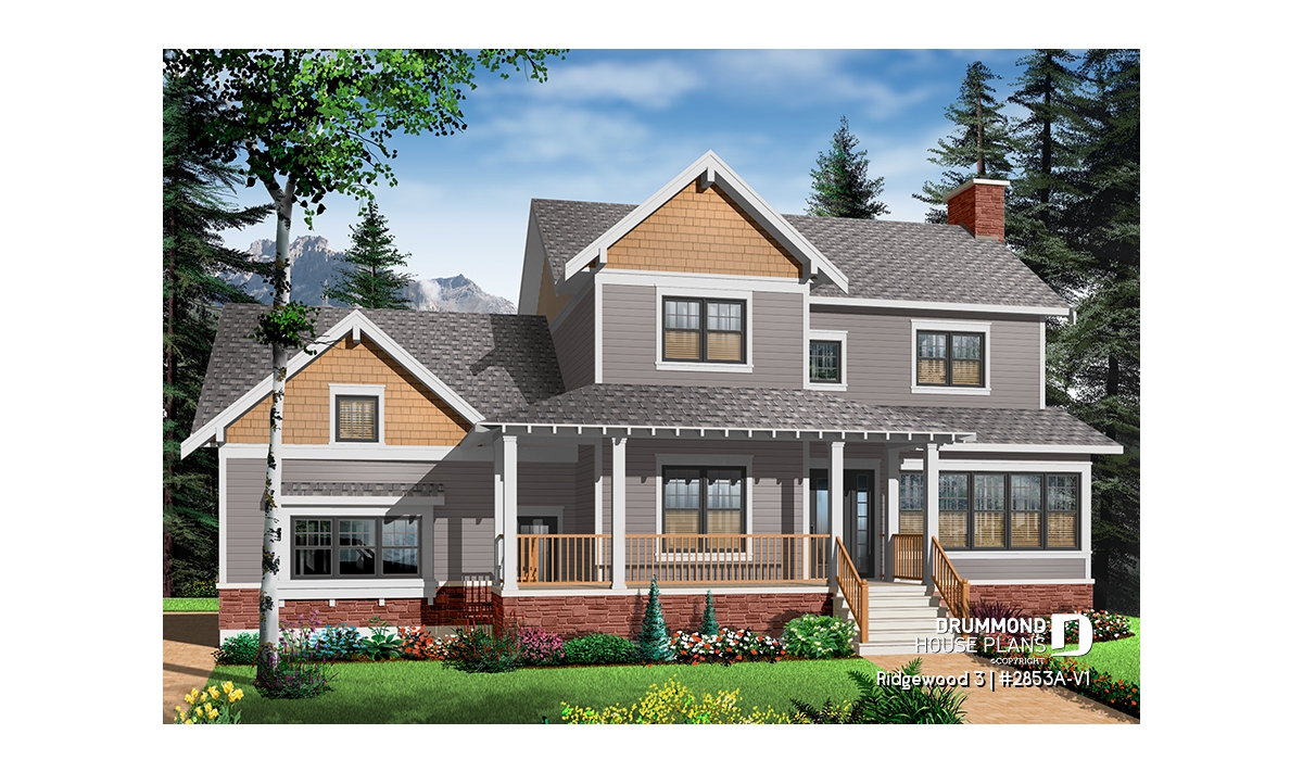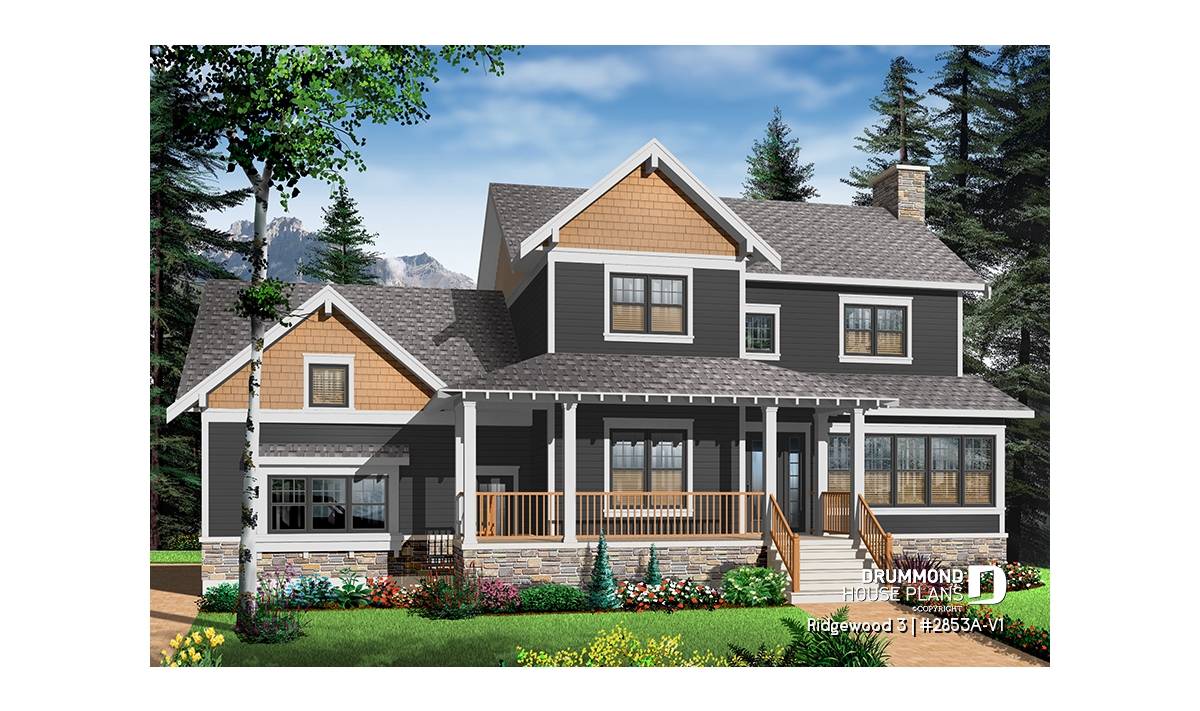 Beautiful Craftsman inspired house plan with 3 to 4 bedrooms.