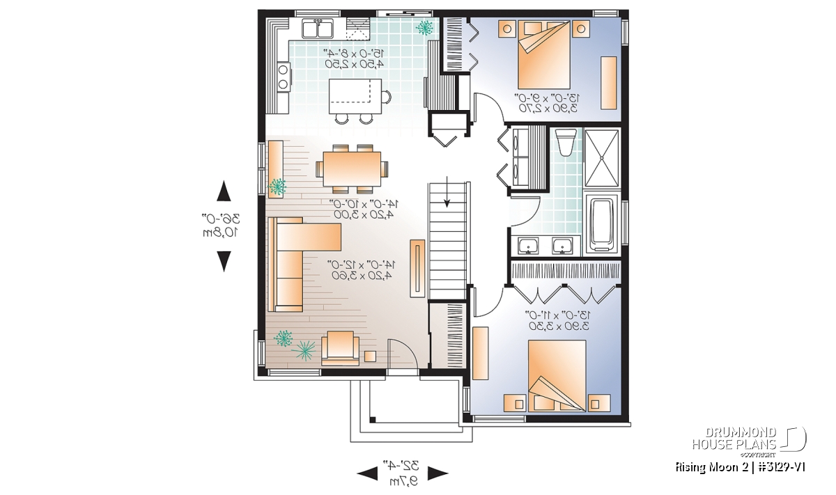 Easy on the budget and sweetly serene, this little bungalow is a slighty larger version of an original model. A covered entry is a pleasing introduction to an entirely open activities area including a kitchen with island and backyard access, dining area, and living room.
