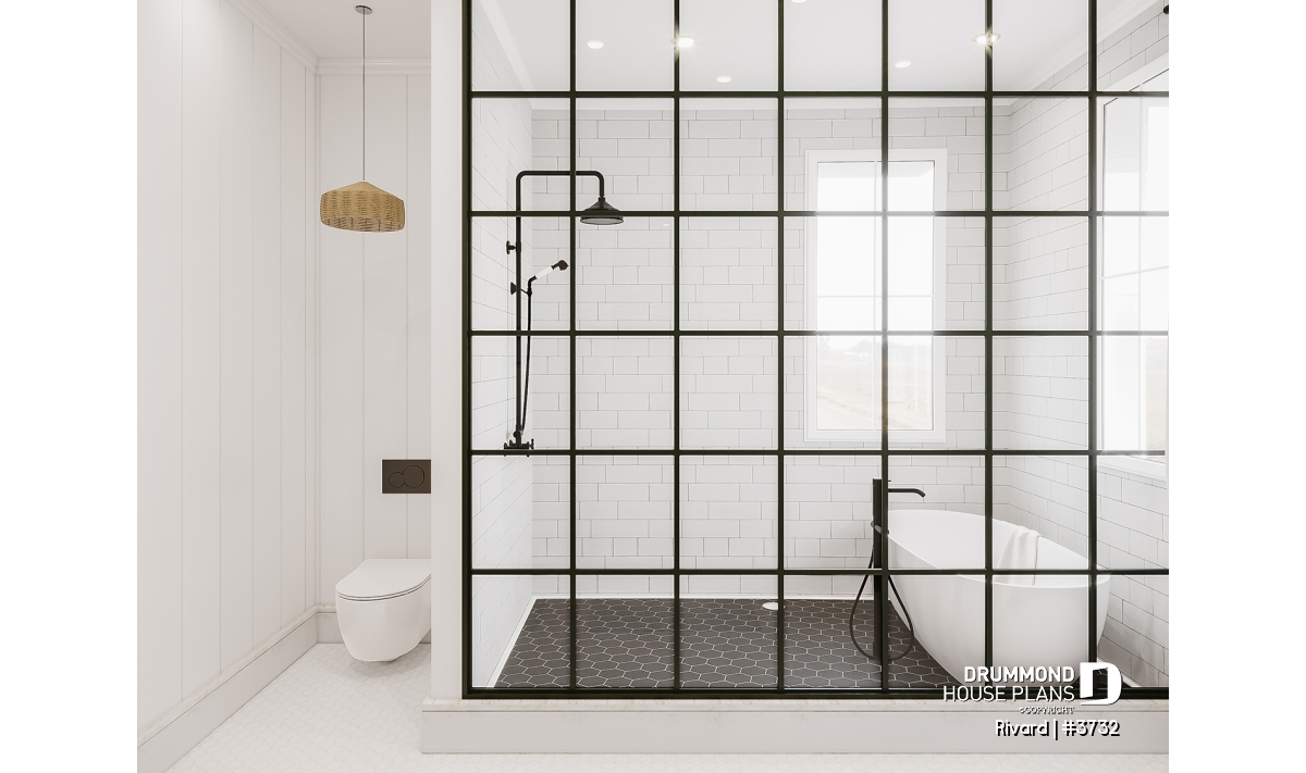 Large master bedroom with walk-in closet and private bathroom. The latter offers 2 sinks and a large shower.