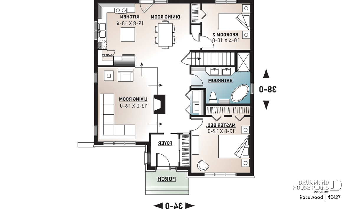 Within, a weatherlock entry leads to a central corridor. To the right, an intimate sunken living room gains an extra 6 inches in ceiling height and is warmed by the fire’s glow. The efficient U-shaped kitchen and adjoining dining room are bathed in light from a double garden door - an ideal exit to enjoy the back yard. Two bedrooms are divided by a hall laundry closet and 5-fixture bathroom complete with double vanity, spa tub and oversize shower.