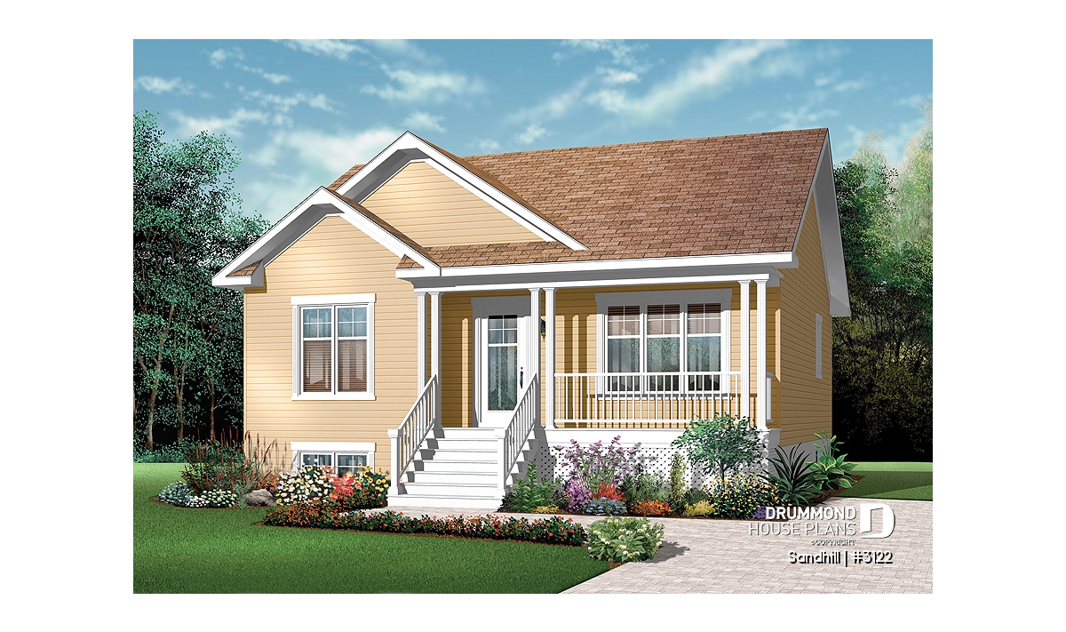 Charming country-style bungalow with a simple, efficient design—perfect for an easy and budget-friendly build.