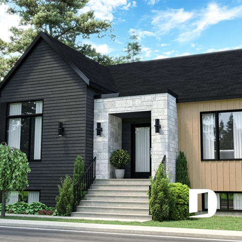 This single-storey house plan offers 3 bedrooms on the ground floor, which is particularly practical for young families. The parents's bedroom has a walk-in closet as well as a partial elevated ceiling of 11'.