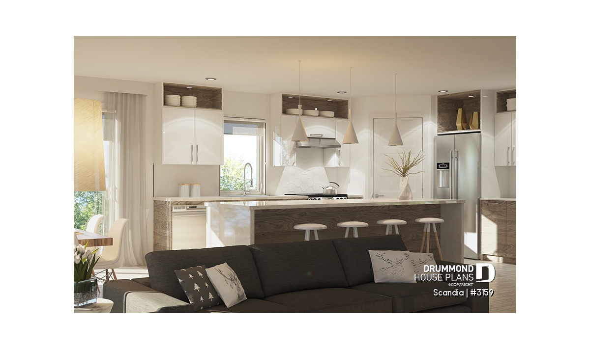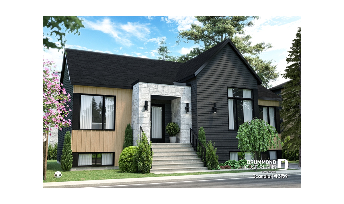 Scandi (plan # 3159) is a superb Scandinavian-inspired modern house plan of 1,400 square feet on the ground floor.