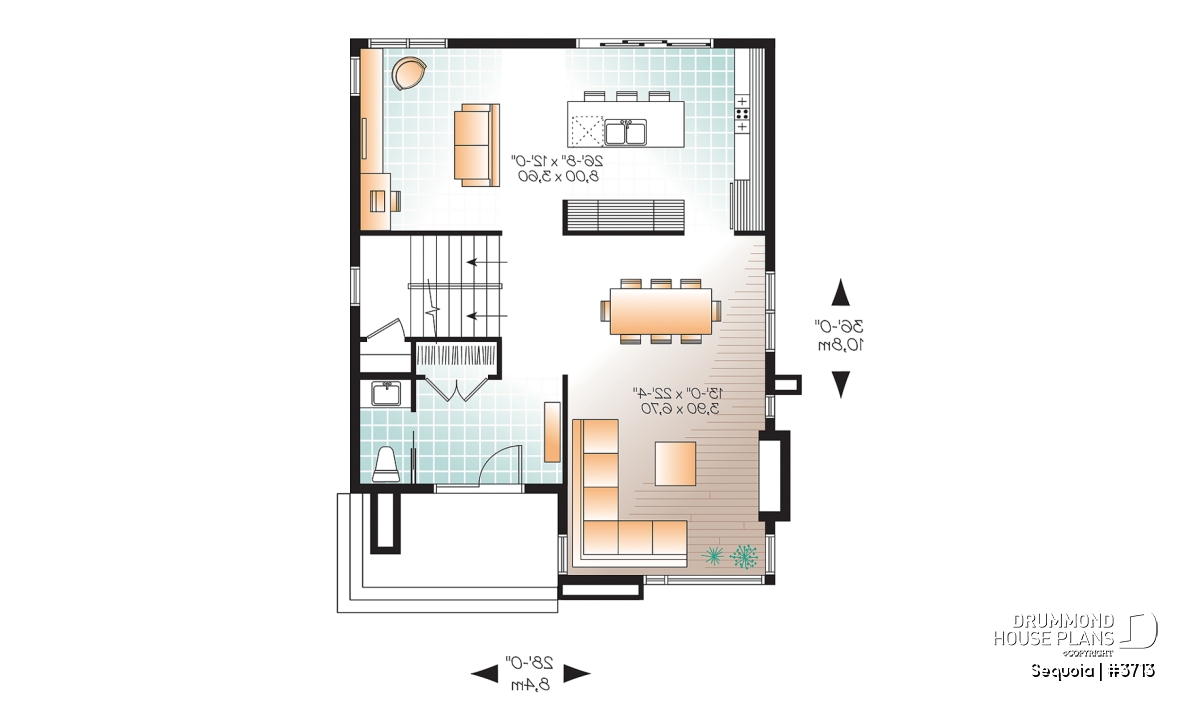 Once inside, modern conveniences abound – a spacious foyer, ample closet, and convenient powder room. Beyond the foyer, light intersects from living room, dining room and staircase windows ensuring well-lit spaces all day long. The back of the house features a kitchen with 8’x3’ island and patio access and an adjoining conversation room. The plan includes a proposed pergola off the back for architectural interest and protection from the sun.