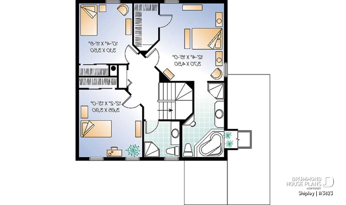 Upstairs, we find a lovely master retreat with walk-in closet and master bathroom with standalone shower plus a spa tube. Two additional bedrooms share a bathroom.