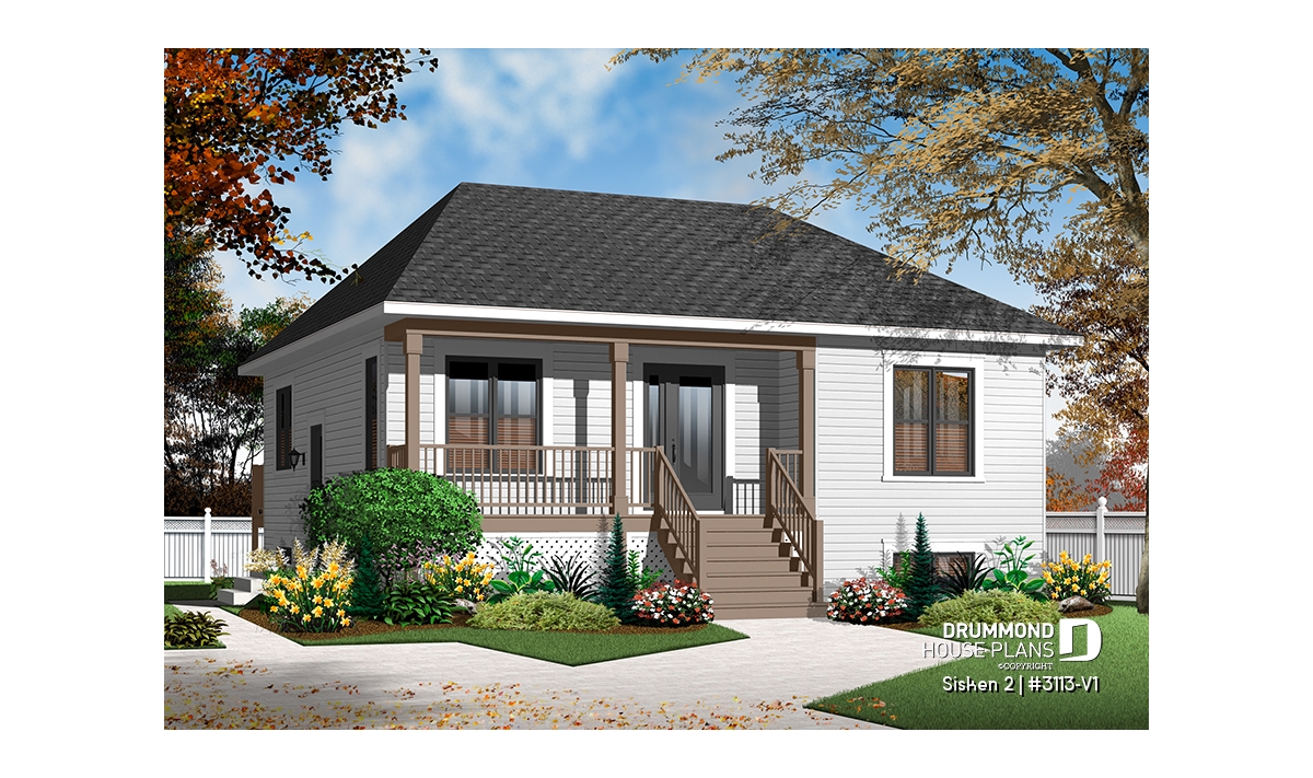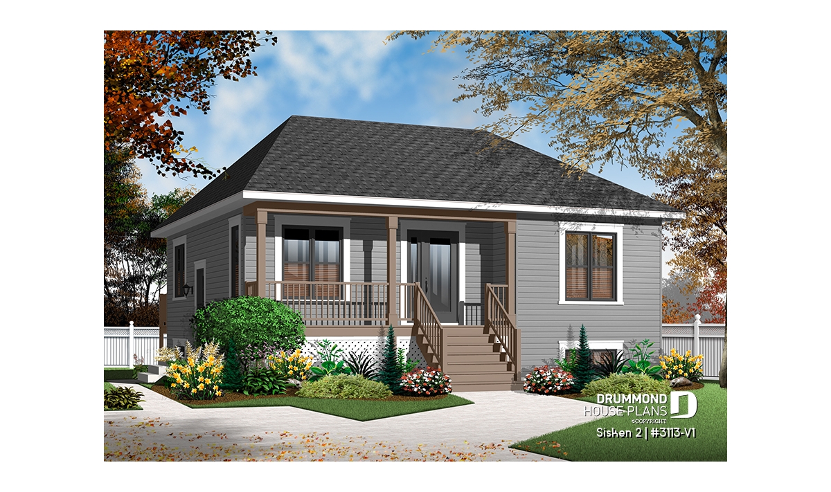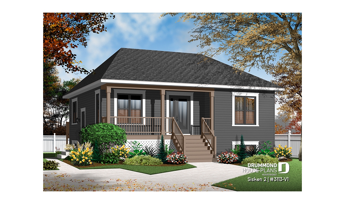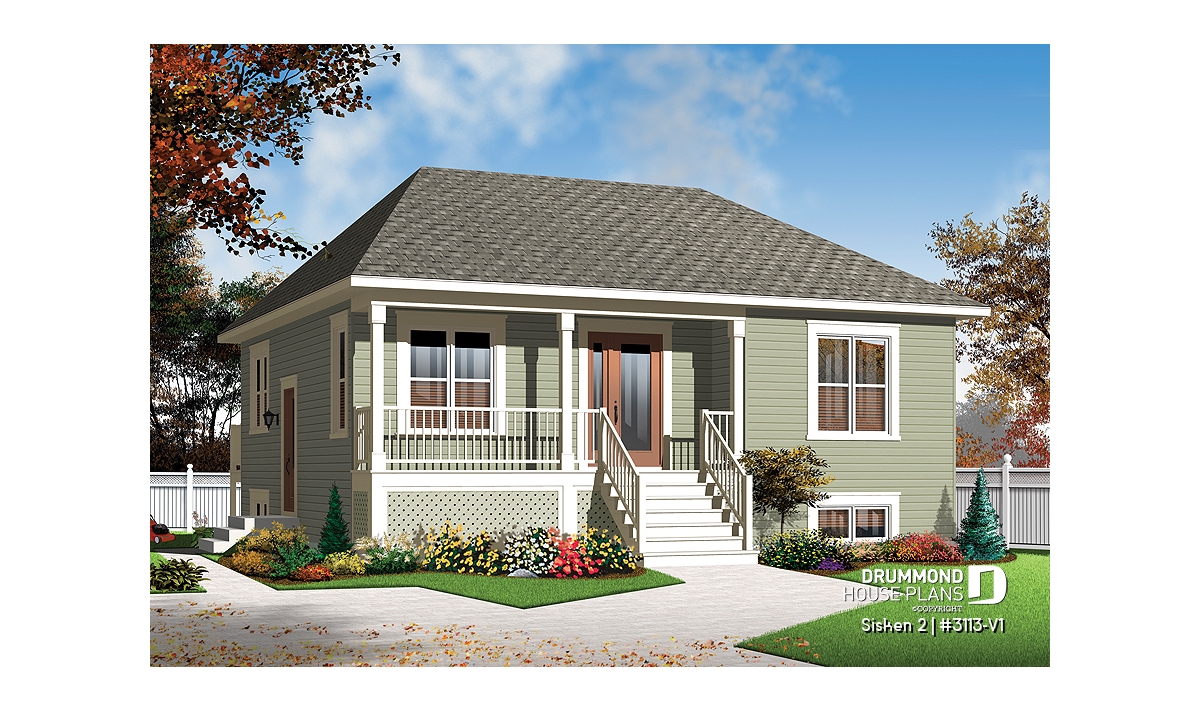 Discover our servicesThis diminutive raised bungalow is simple, charming and economical. A lot of features are packed into 973 square feet - two bedrooms, country kitchen, living room, a four piece bathroom and even a laundry area! The staircase to the basement is open-spindled to keep the activity area as open as possible and leads downstairs which can be developed as desired, even with bedrooms due to being ia raised basement. Simple to build and gentle on the budget.