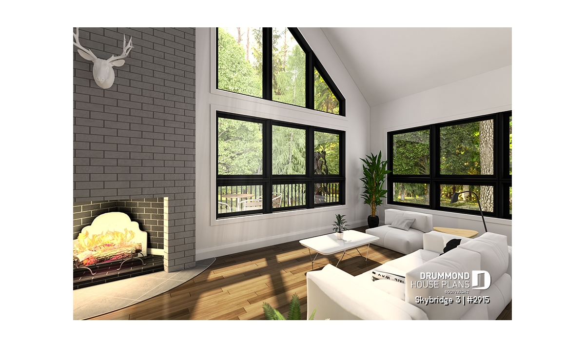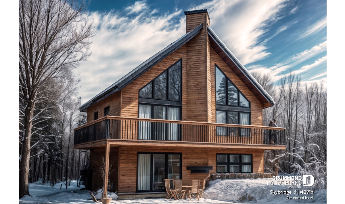 The **SKYRIDGE Chalet House Plan (#2915)** is a rustic yet highly functional design created for families seeking a **spacious, affordable, and panoramic chalet-style home**. Developed in response to the strong popularity of a previous chalet model, this plan builds on proven features while offering enhanced comfort, flexibility, and timeless appeal—making it a favorite among buyers looking for a true mountain or lakeside retreat.