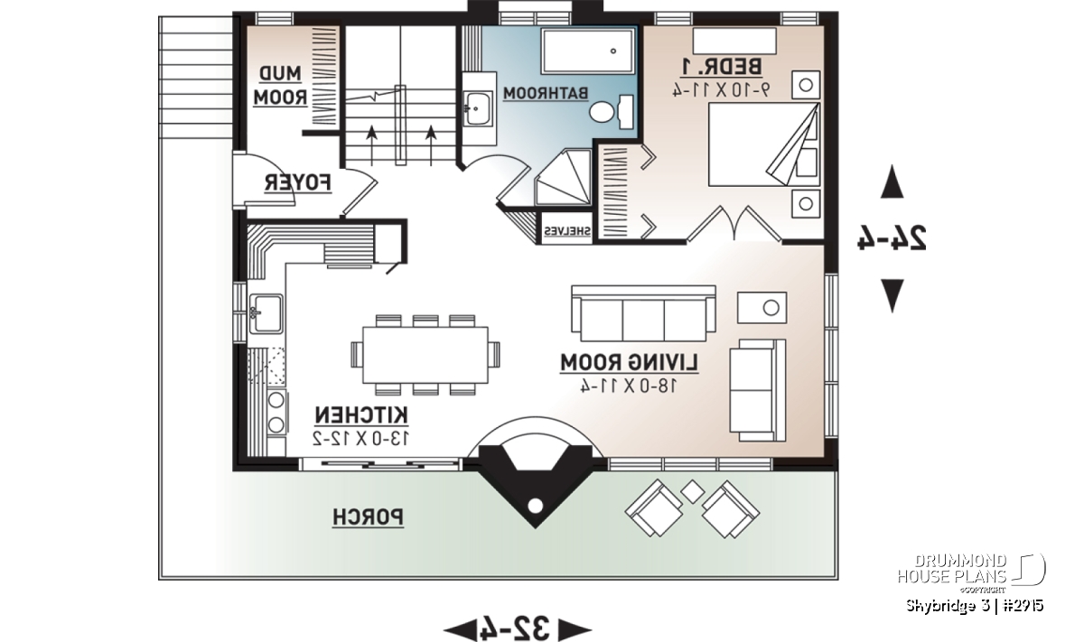 Outdoor living is equally well considered, with a **large patio and balcony on two sides of the home**, ideal for enjoying mountain, forest, or water views in every season. With its **simple, build-friendly lines**, efficient layout, and warm rustic character, the **SKYRIDGE Chalet House Plan (#2915)** is an excellent choice for those dreaming of a welcoming, durable, and view-oriented chalet retreat in the U.S. market.