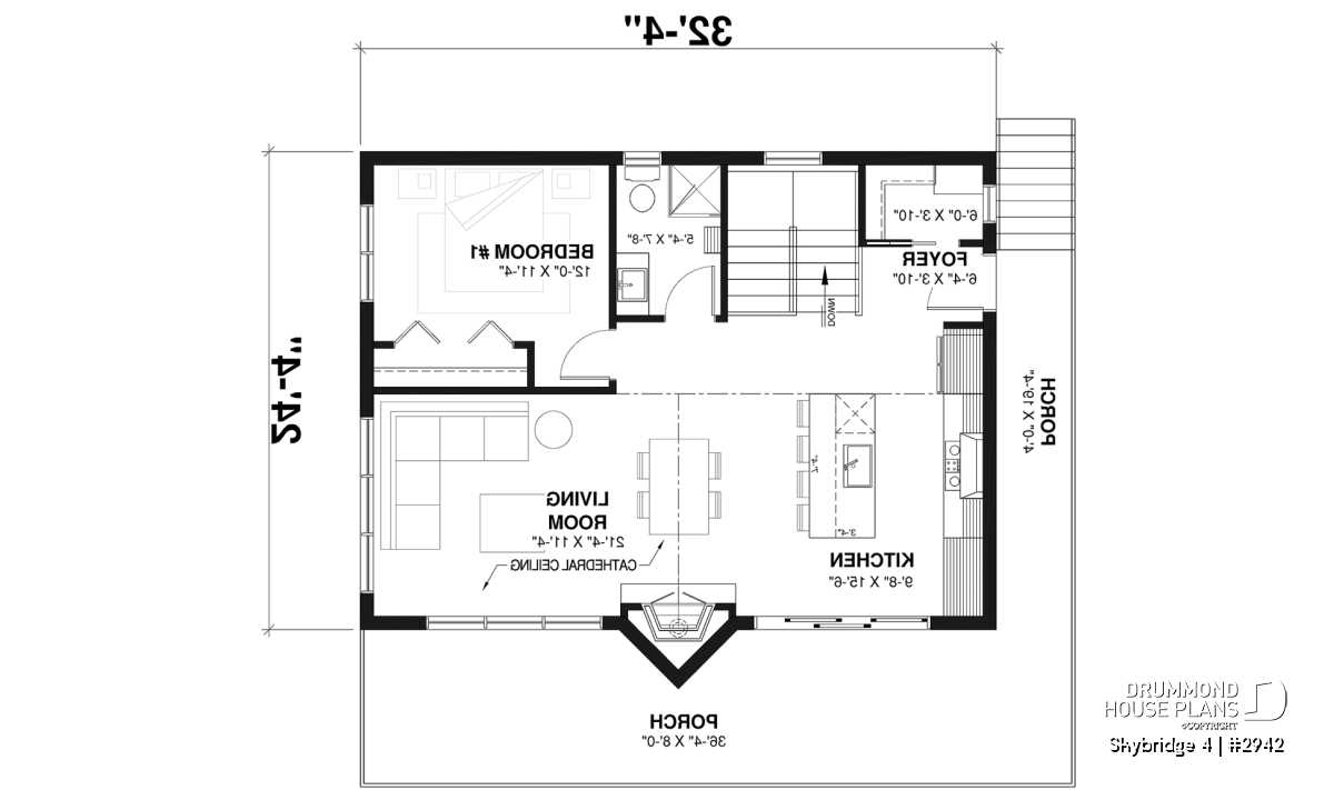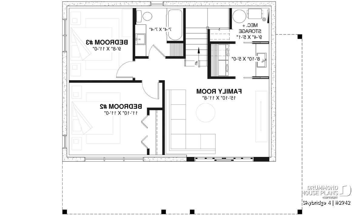 The SKYBRIDGE 4 (#2942) is a bright and budget-friendly rustic cottage plan designed to maximize comfort while keeping construction simple. With its clean lines and walkout basement, this model has become a popular choice for outdoor enthusiasts, ski lovers, or those building on scenic lots.
