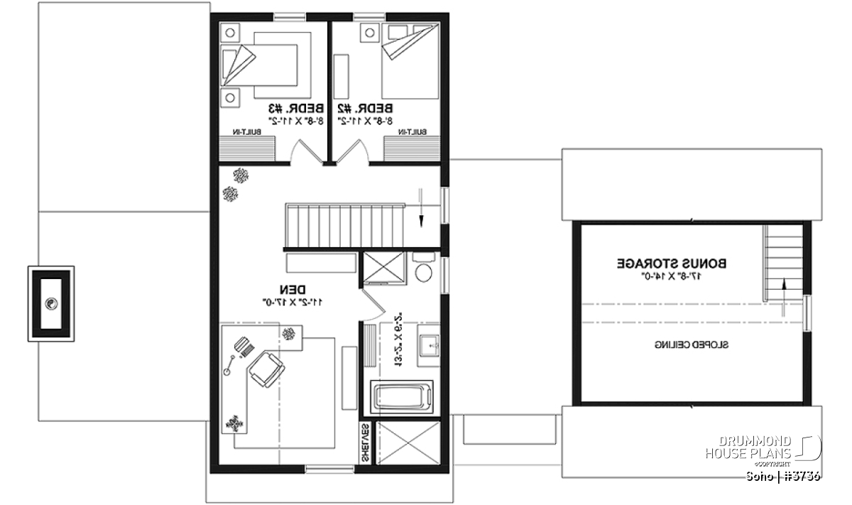 Storage provided above the garage and accessible by a staircase (sloping ceiling in this sector).
