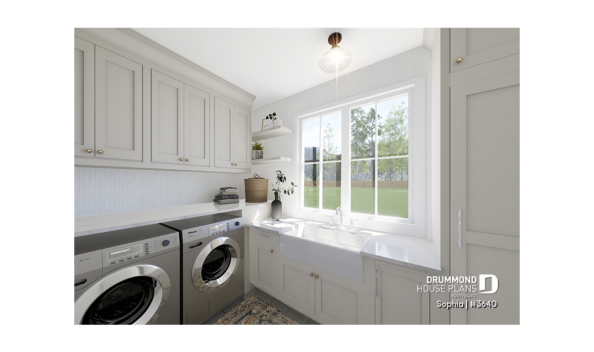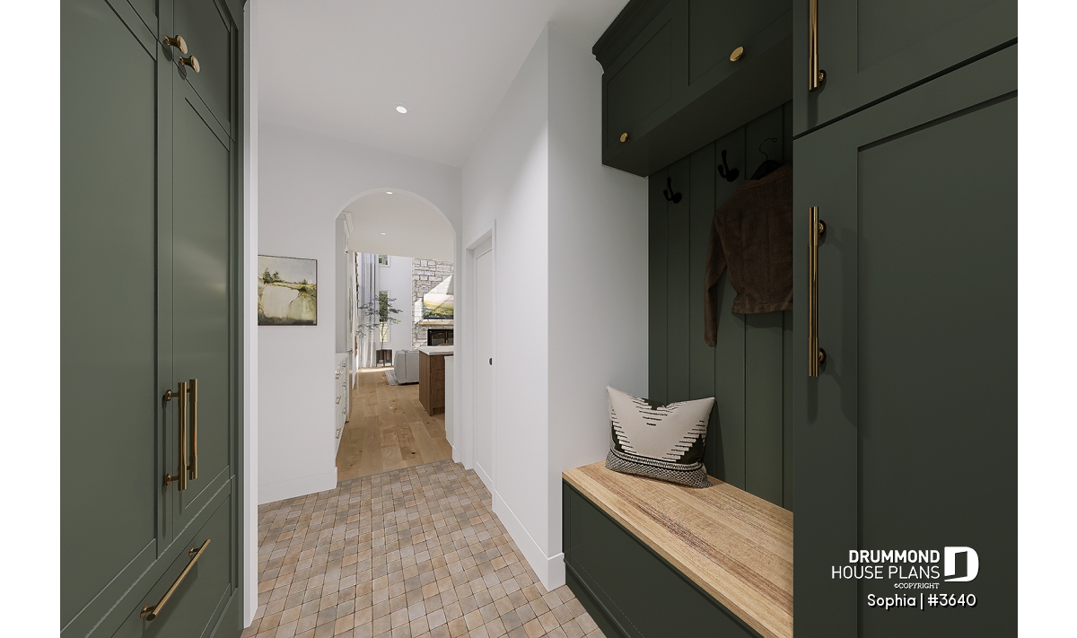 The pantry, mudroom and laundry room are close to the garage entrance.