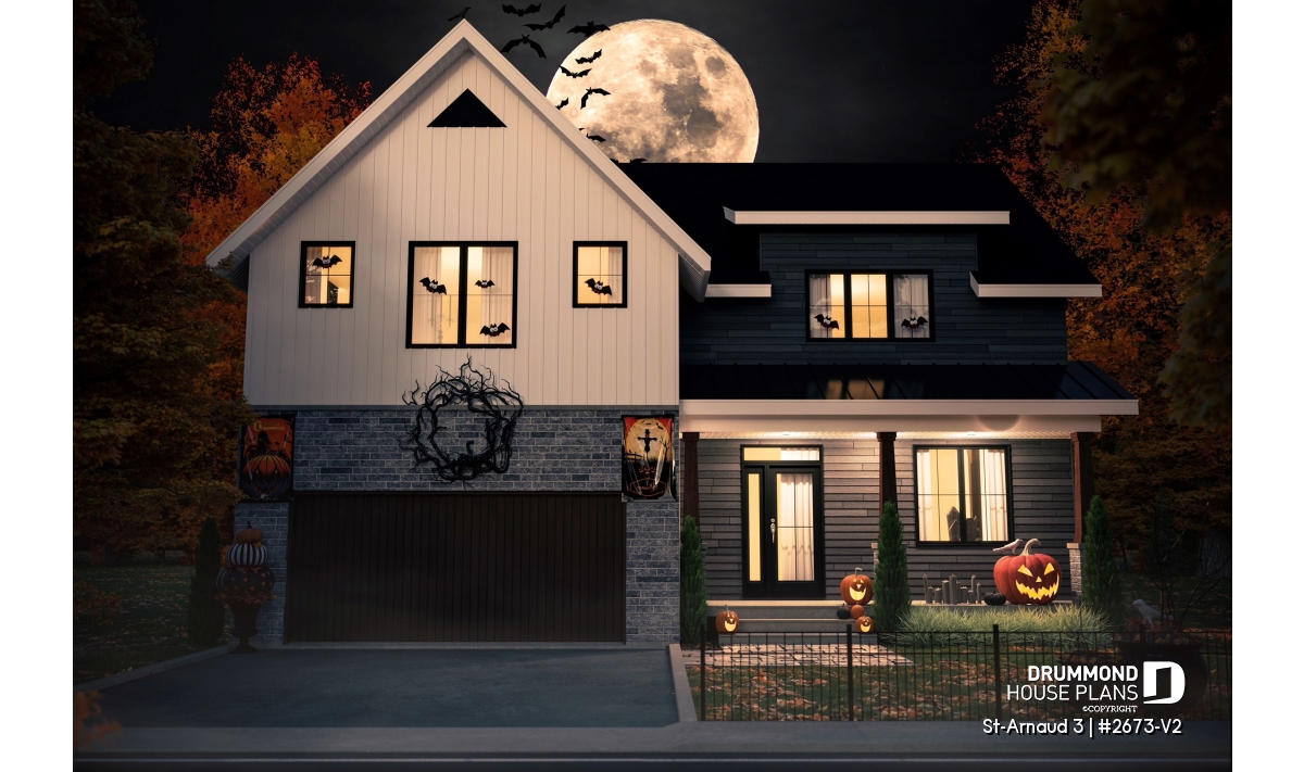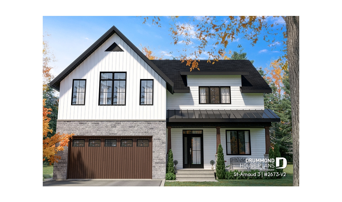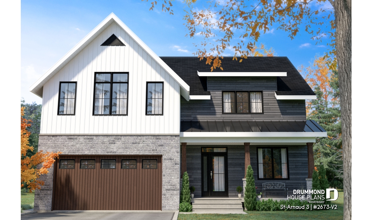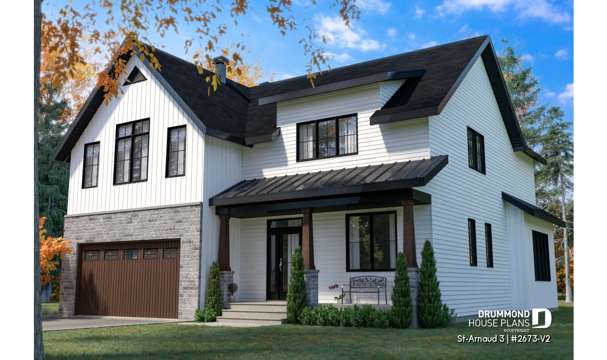 The open mezzanine overlooking the family room enhances the volume and brightness of the space. A double garage provides direct, convenient access to the home. Finally, an unfinished basement and several foundation options allow you to adapt this plan to your lifestyle and your lot.