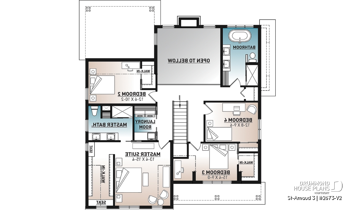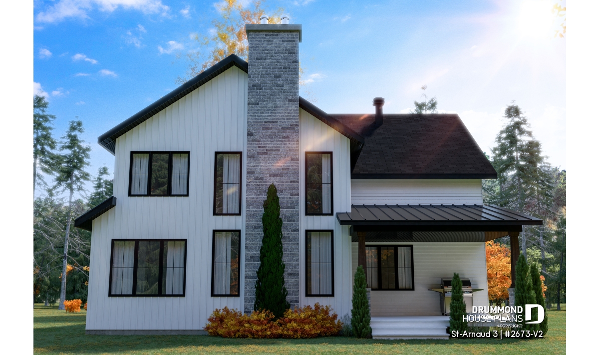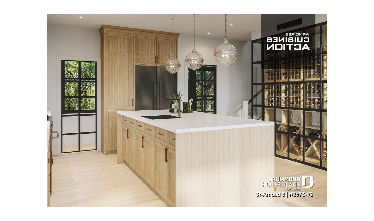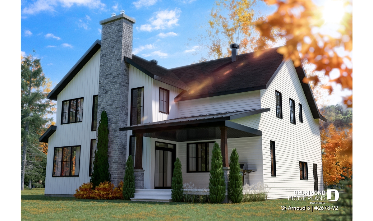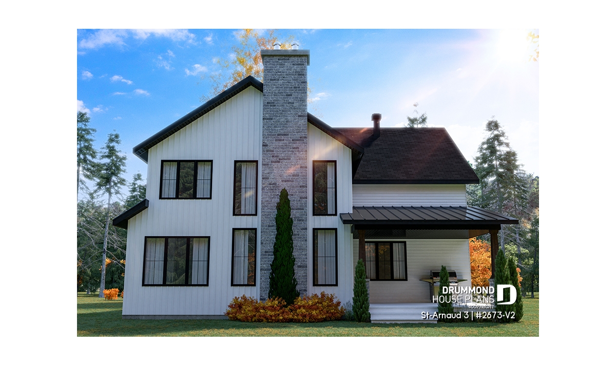 The open mezzanine overlooking the family room enhances the volume and brightness of the space. A double garage provides direct, convenient access to the home. Finally, an unfinished basement and several foundation options allow you to adapt this plan to your lifestyle and your lot.