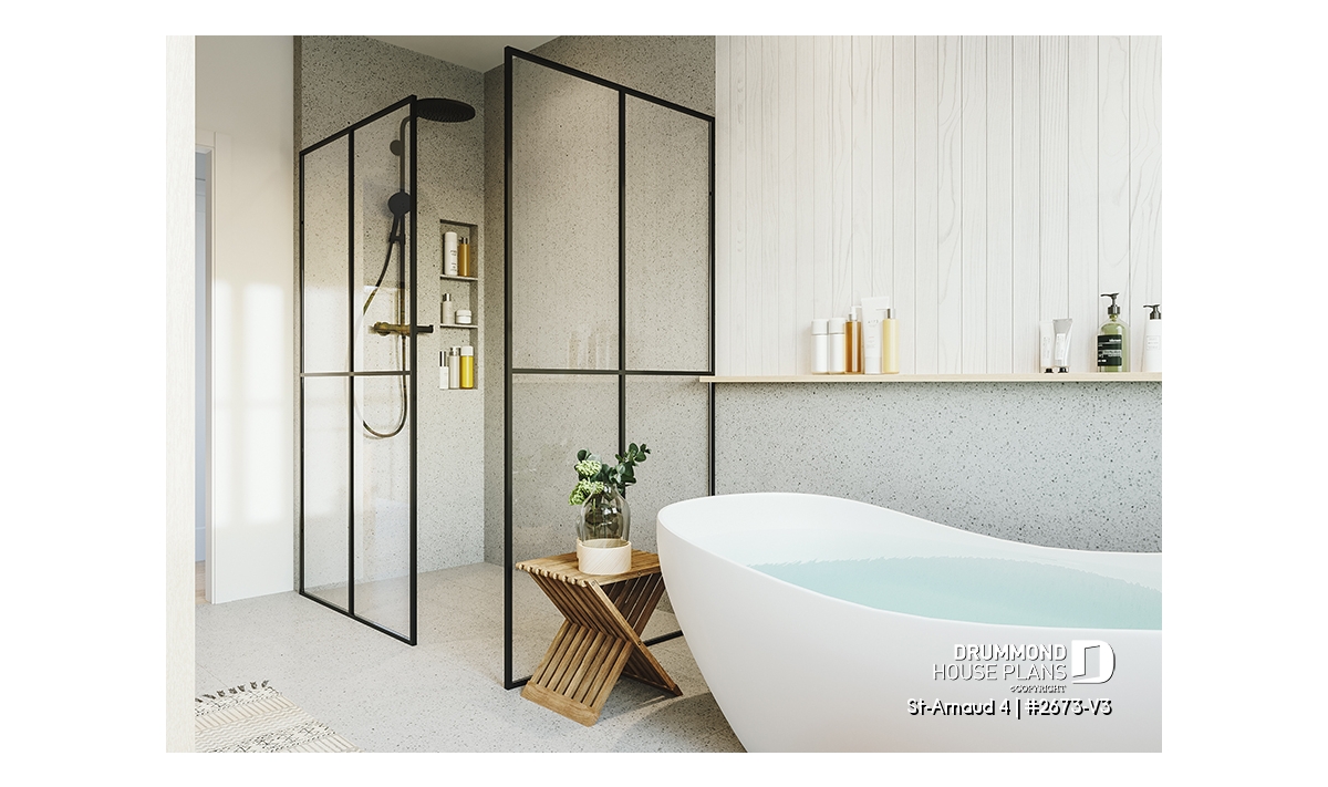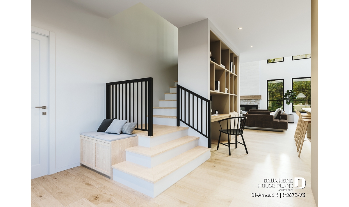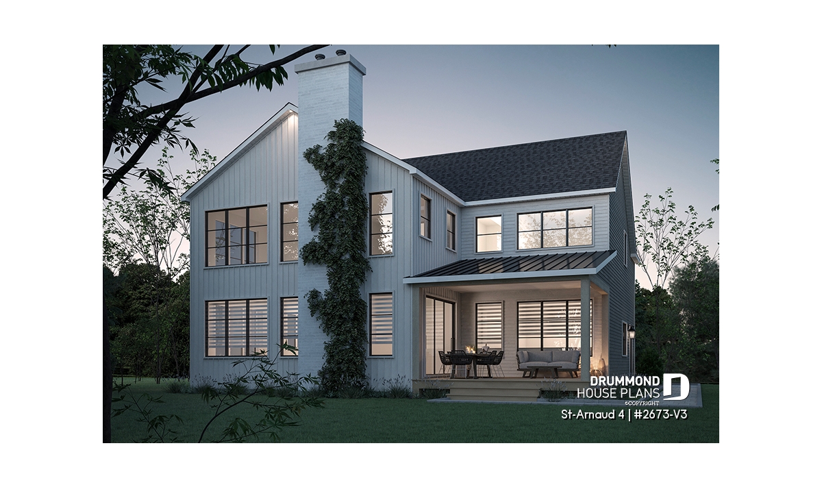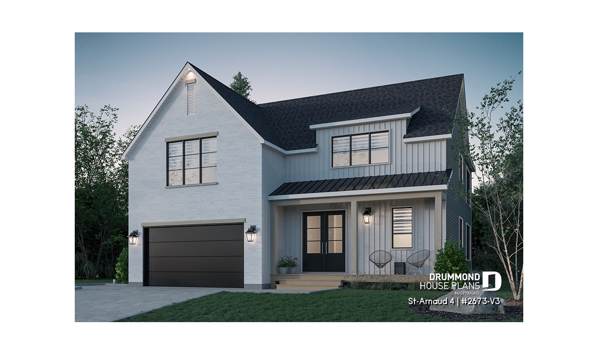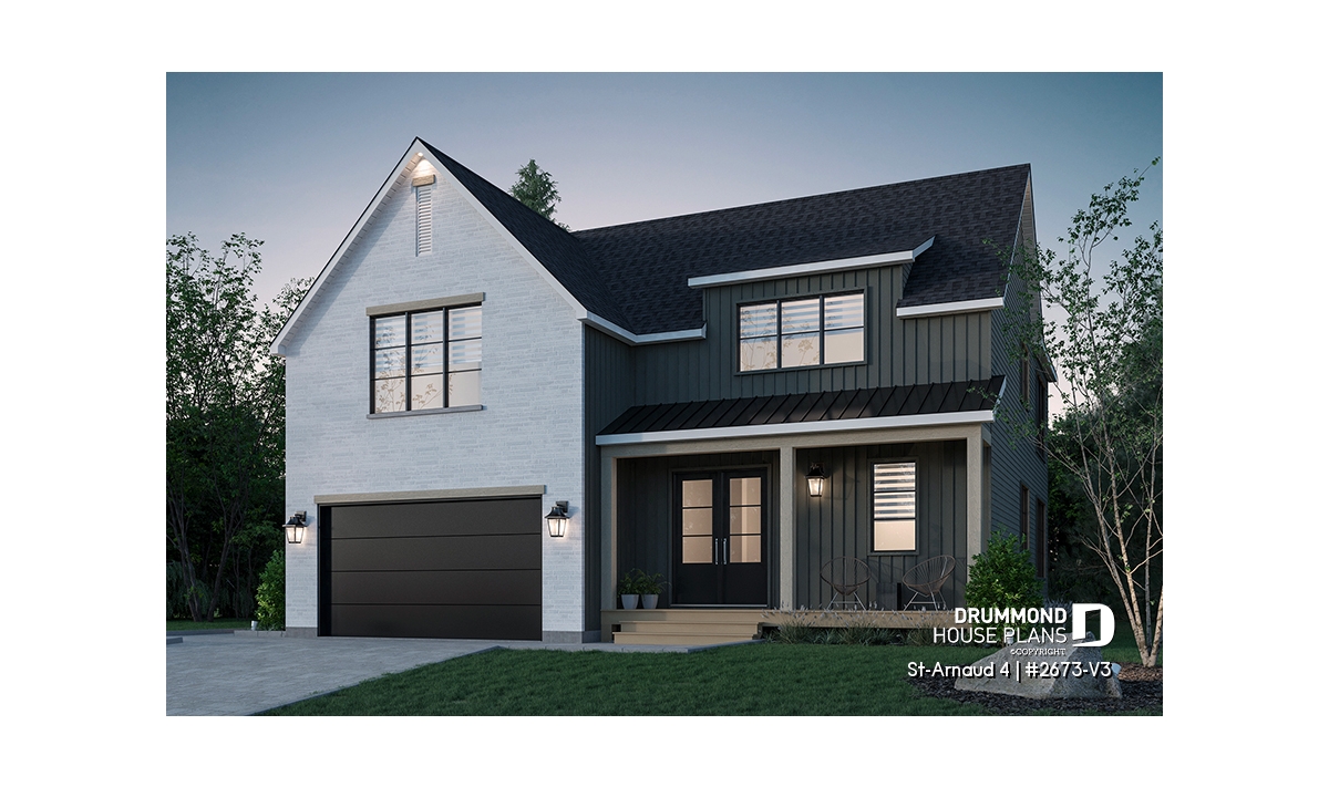 House plan ST-ARNAUD 4 (#2673-V3) is the 4th and smaller version of an already popular collection here at Drummond House Plans! With all the conveniences of its previous Farmhouse versions, the St-Arnaud 4 offers a more refined Scandinavian-inspired look.