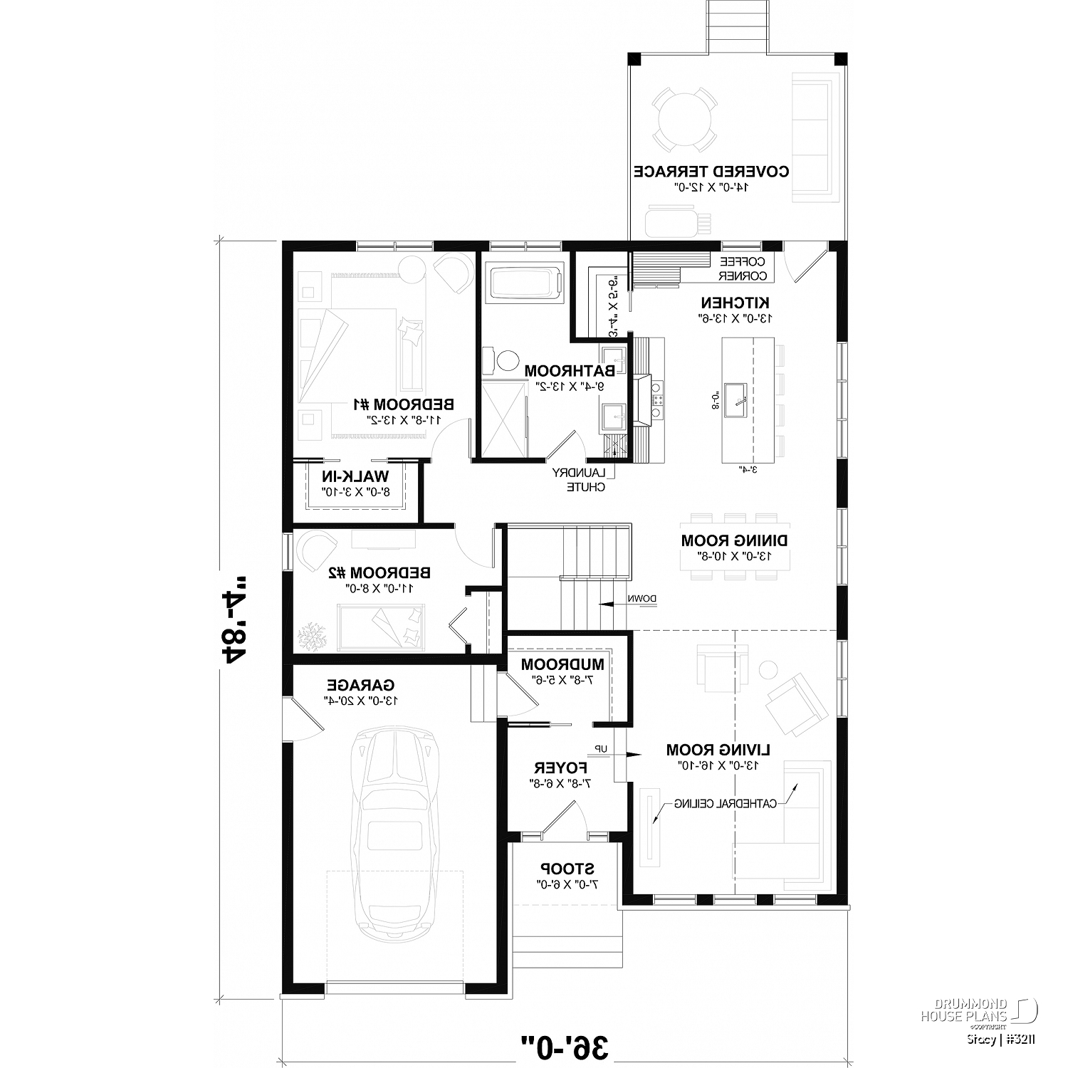 To add a garage, another bedroom, finish the basement or any other modification, click here and let us know about your desired changes and to get your free quote for the modification of your plan.