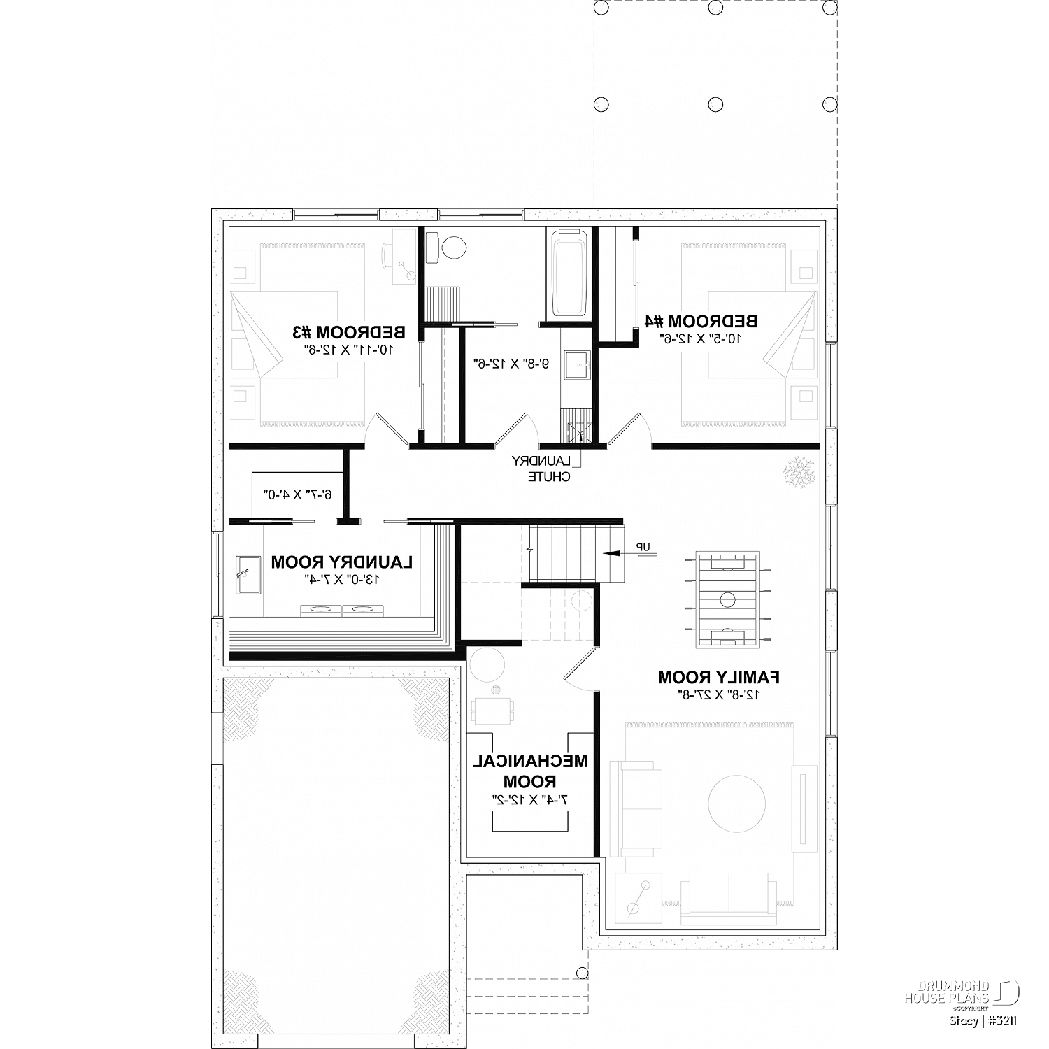Optional finished basement including two additional bedrooms, a family room, a bathroom with laundry chute, a laundry room, and a mechanical room.