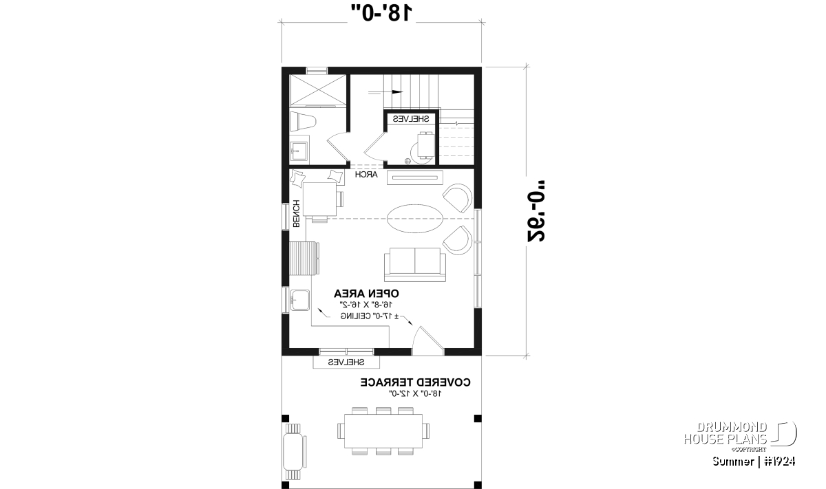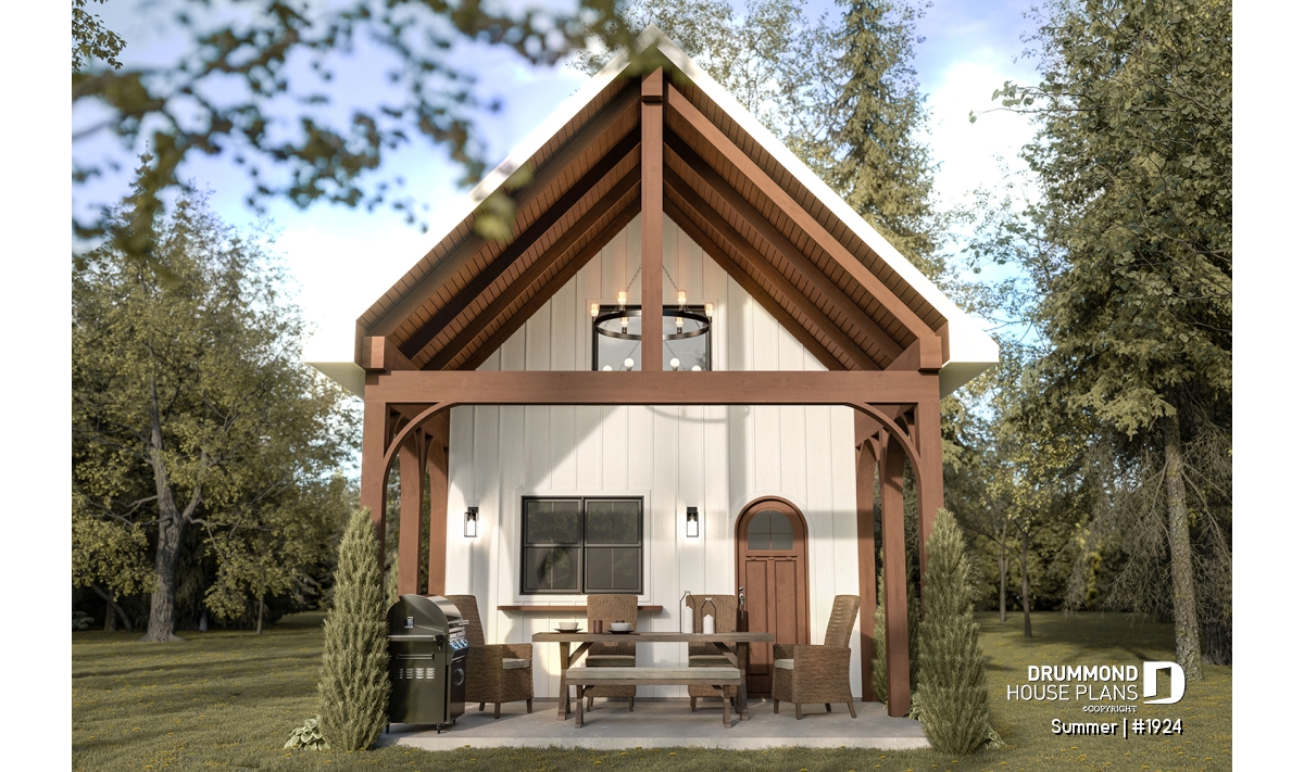 The SUMMER tiny house plan (plan #1924) offers 636 square feet on 2 floors. The foundation is a monolithic slab, but other foundations are available, depending on your needs. It's "old church" look gives it an undeniable charm and warmth at the same time.