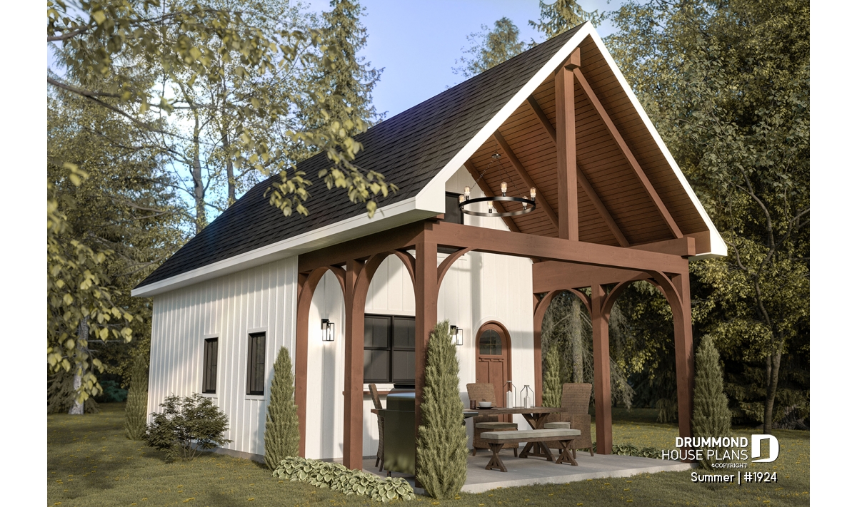 The versatility of the interior design allows you to build this pretty little house as a pool house, as a mini-house or guest house!