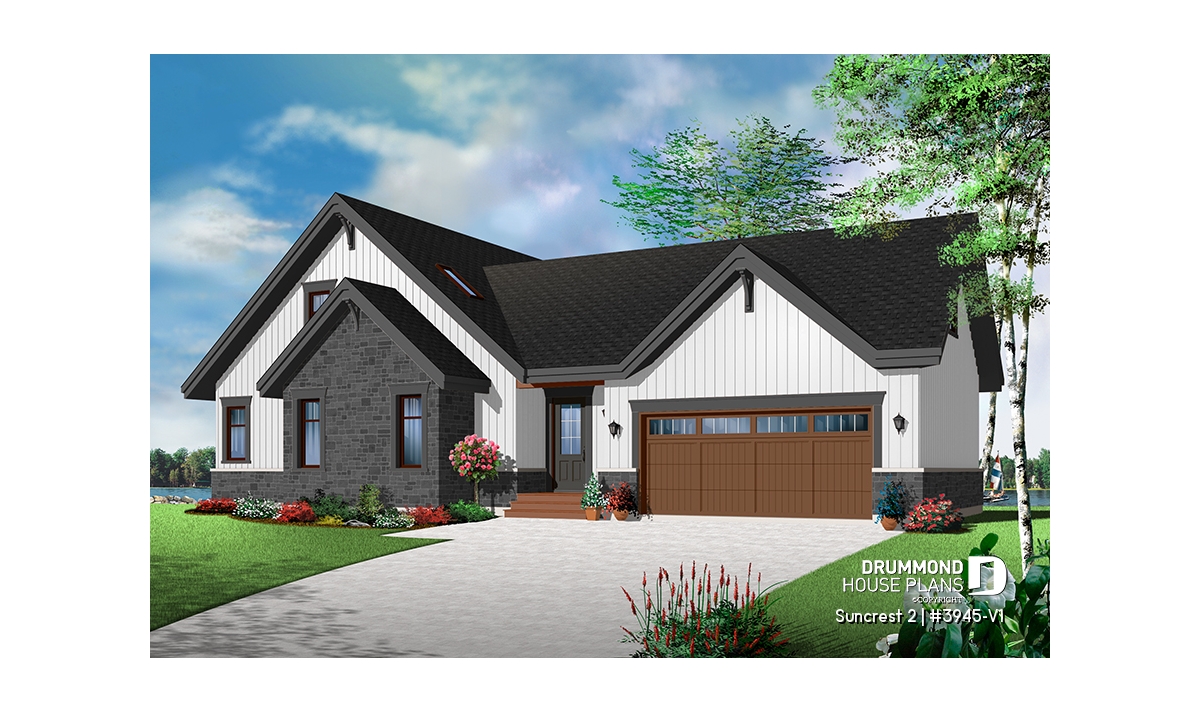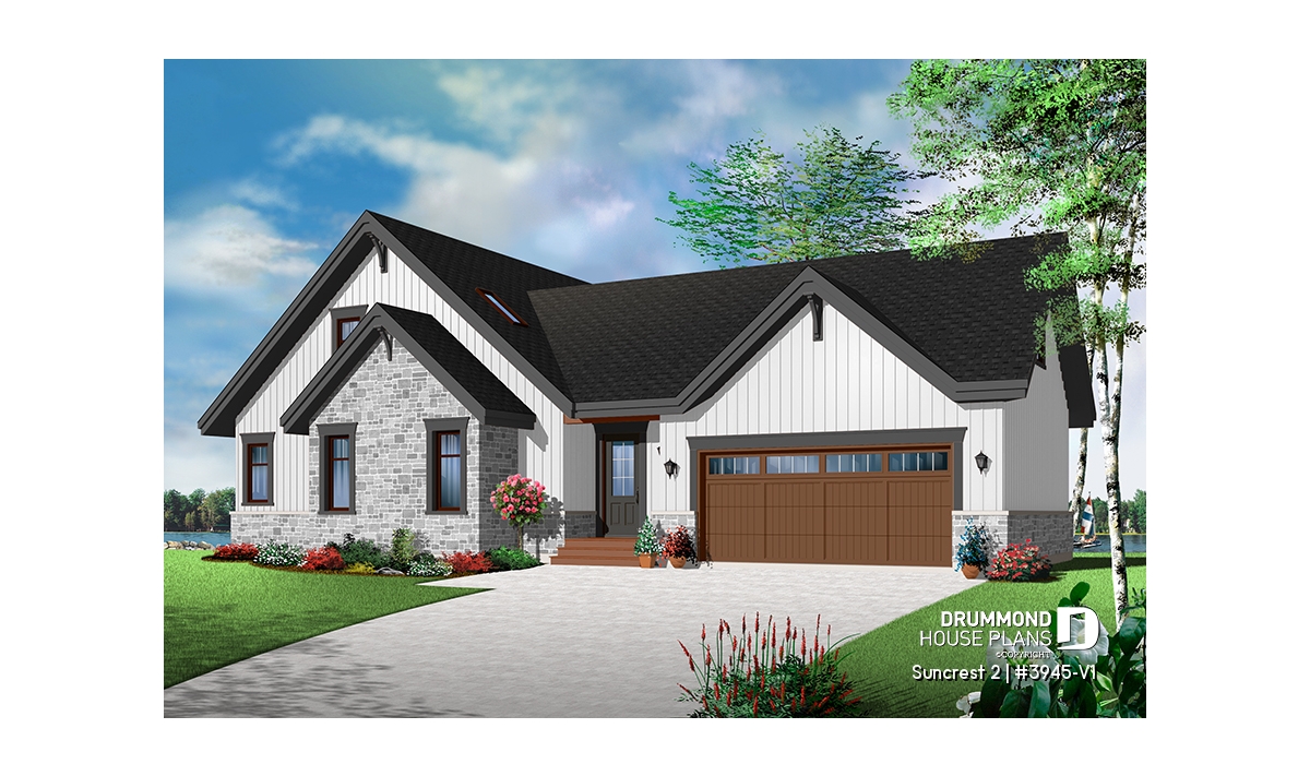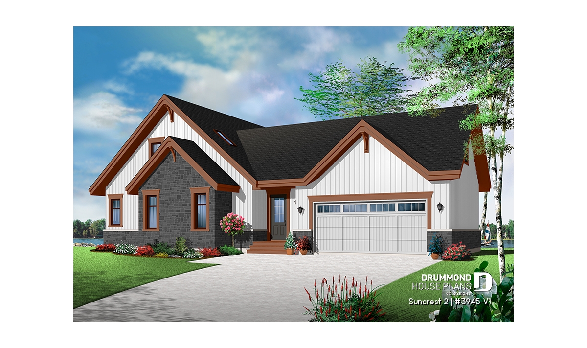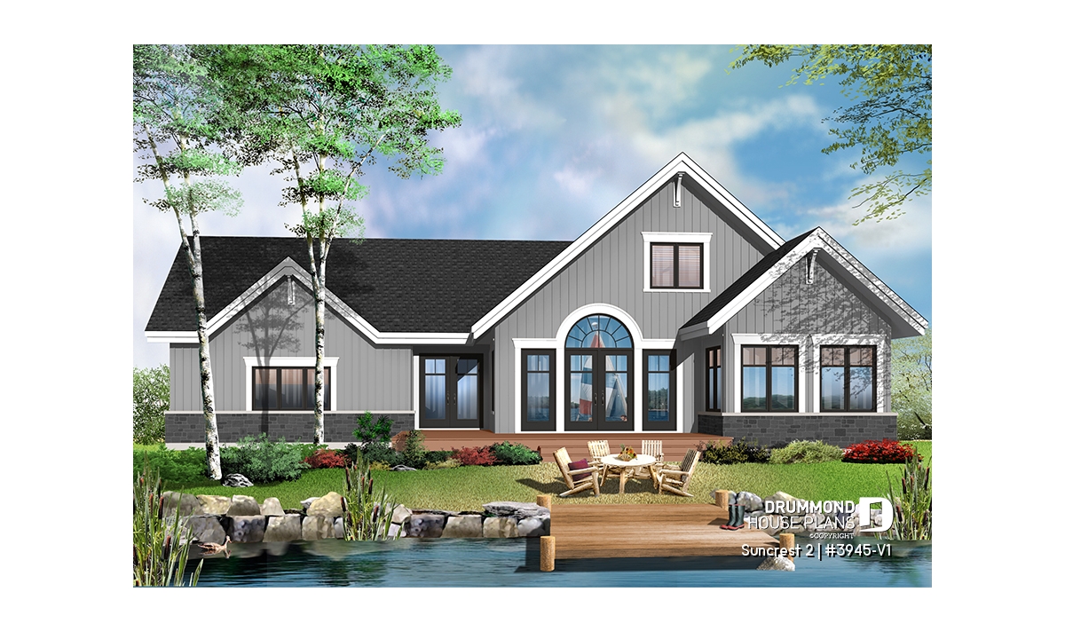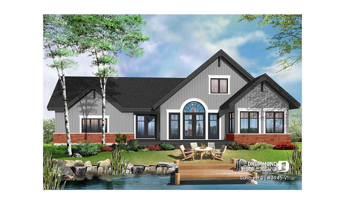 This pretty little bungalow would work equally beautifully as a 4-season getaway or as a charming city home. A trio of cheerful gables puts a charming face forward. An open vestibule conveniently services front, back and garage access.