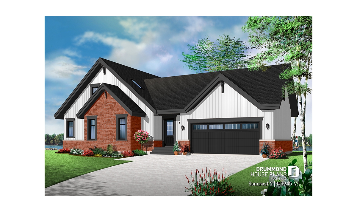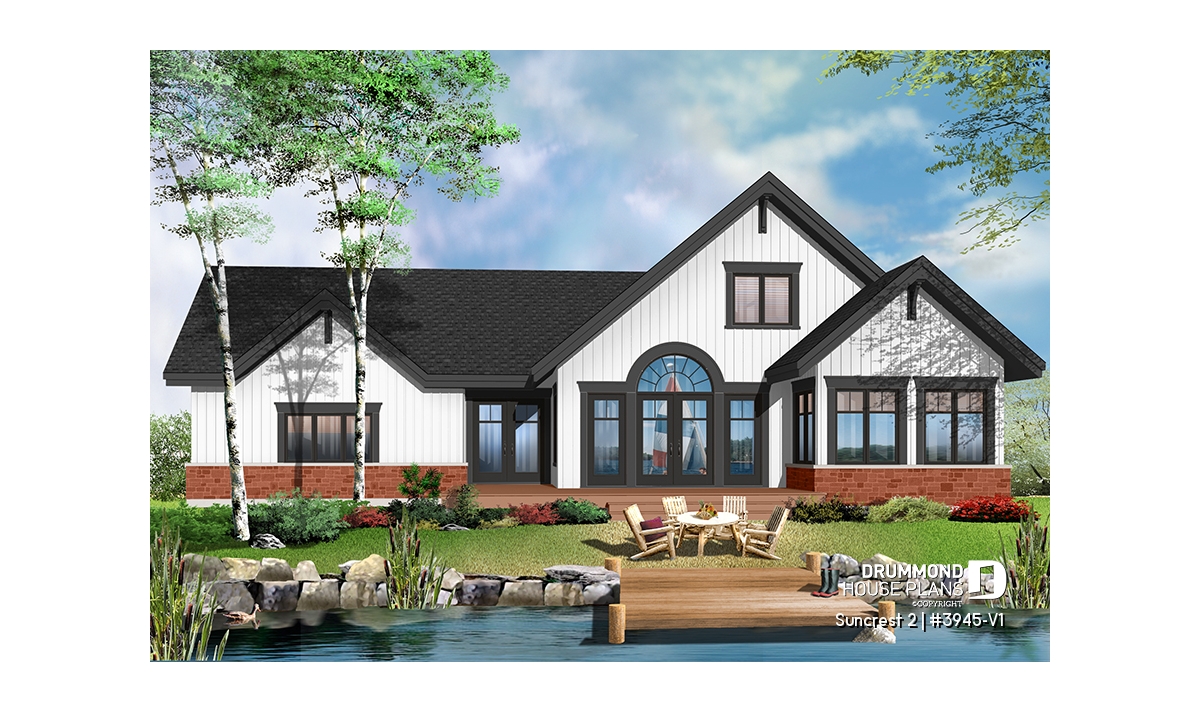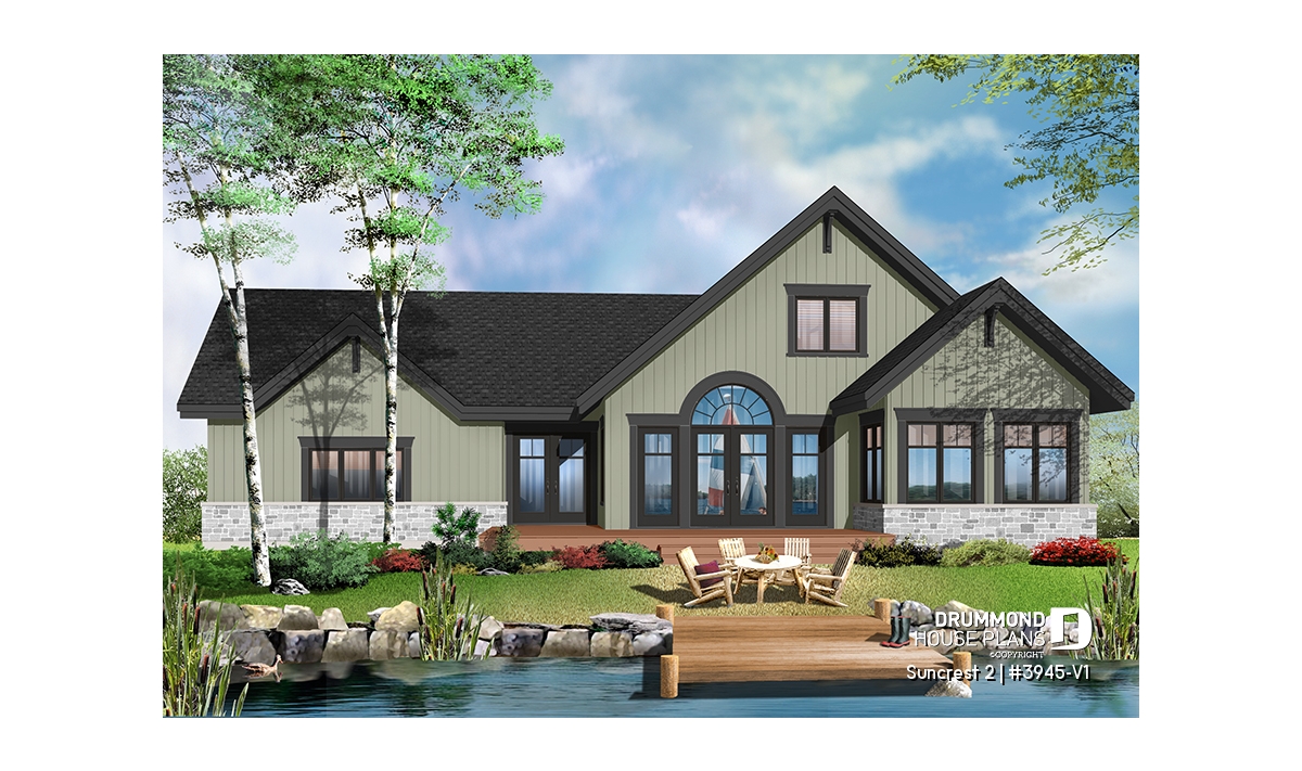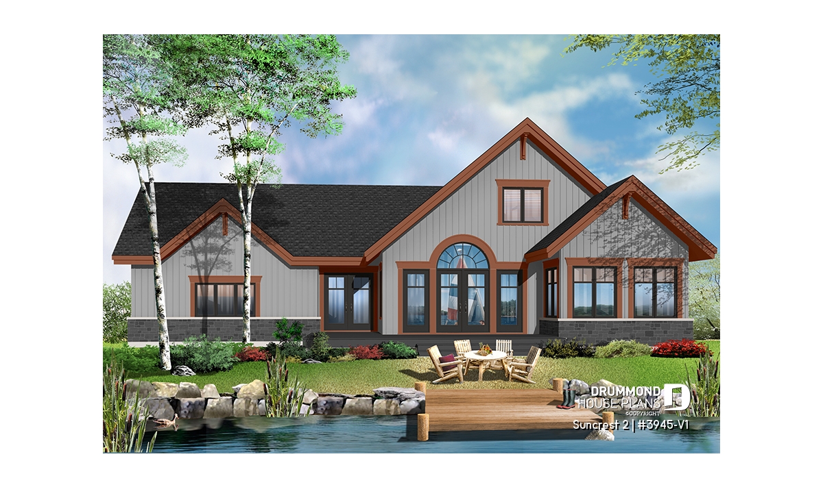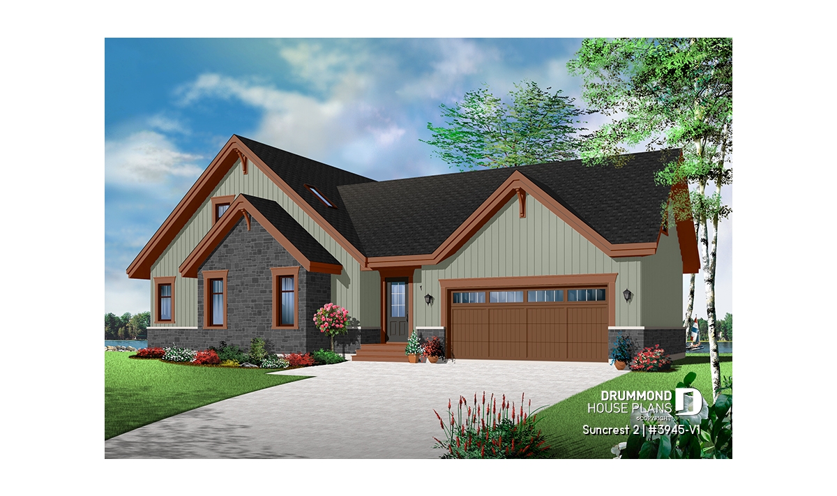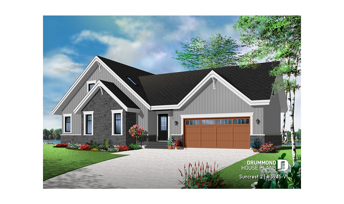 This pretty little bungalow would work equally beautifully as a 4-season getaway or as a charming city home. A trio of cheerful gables puts a charming face forward. An open vestibule conveniently services front, back and garage access.