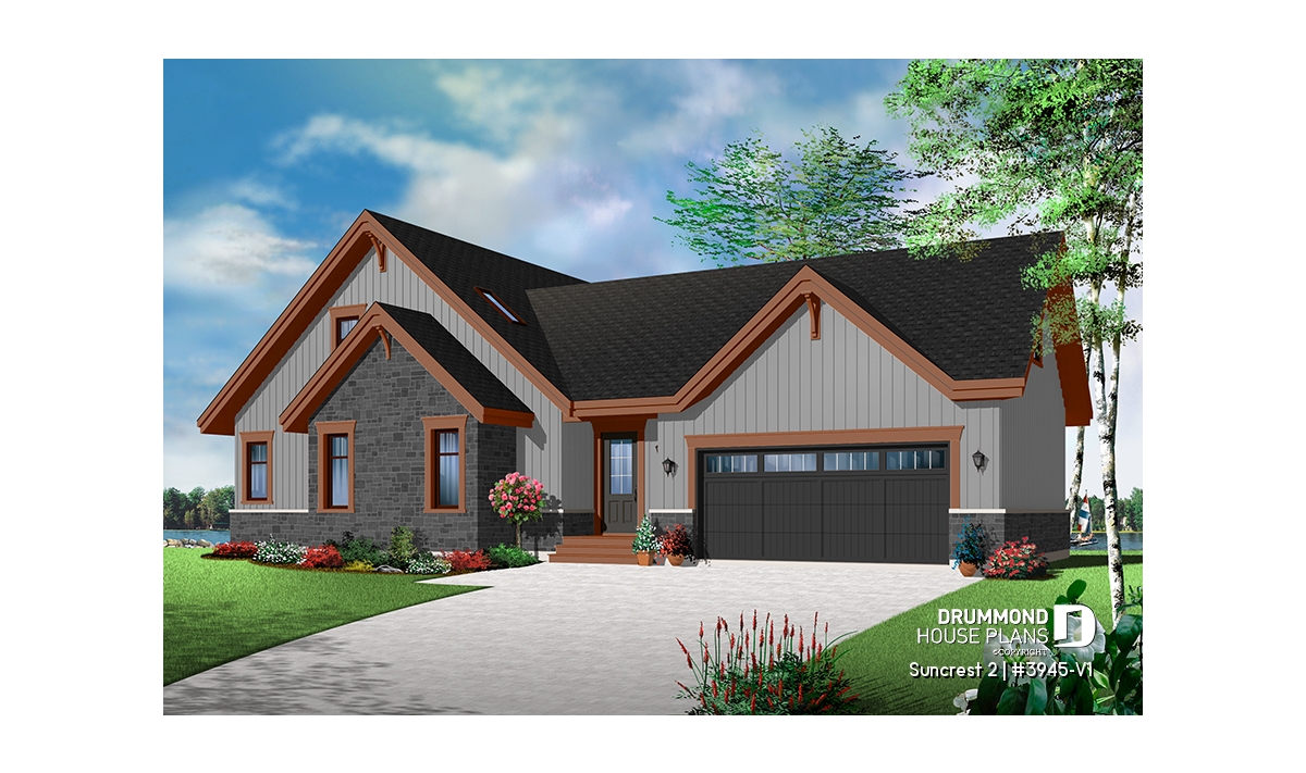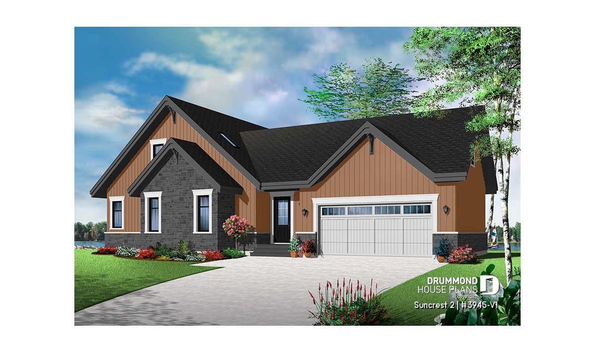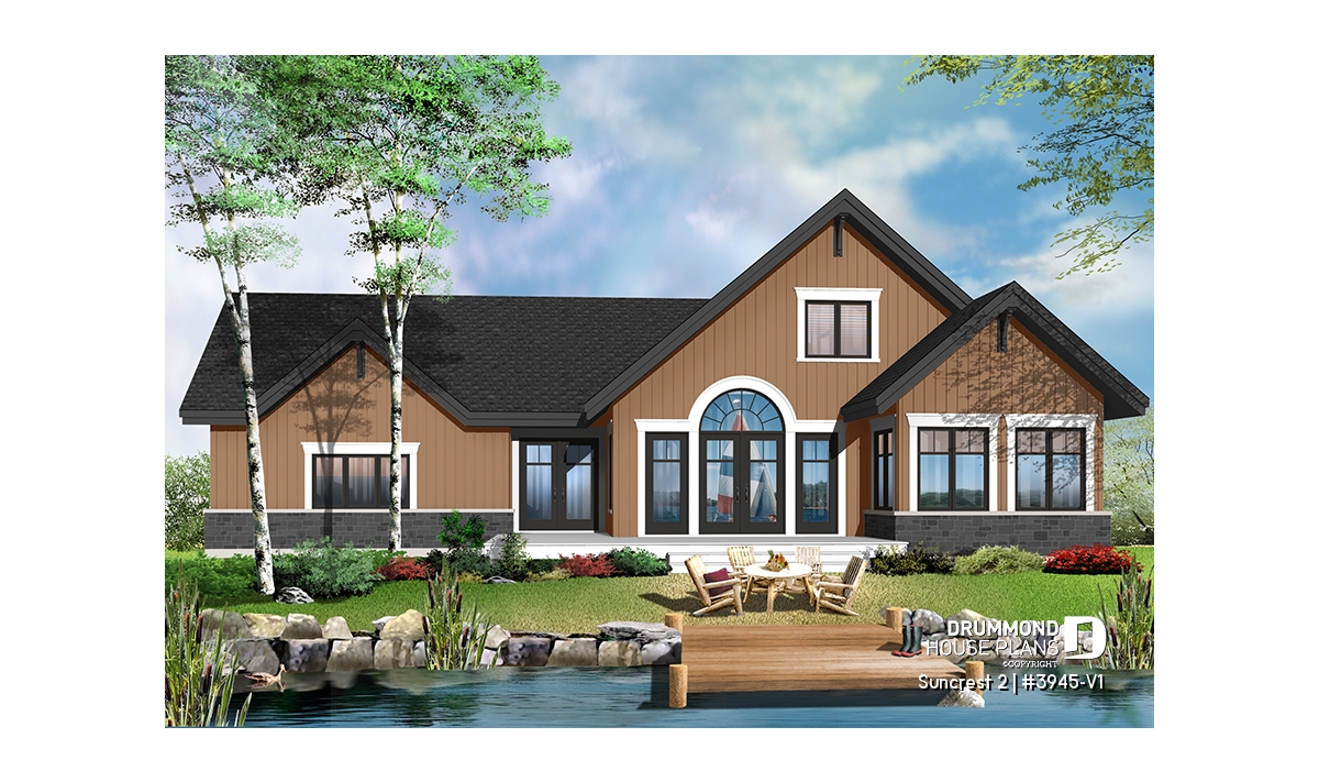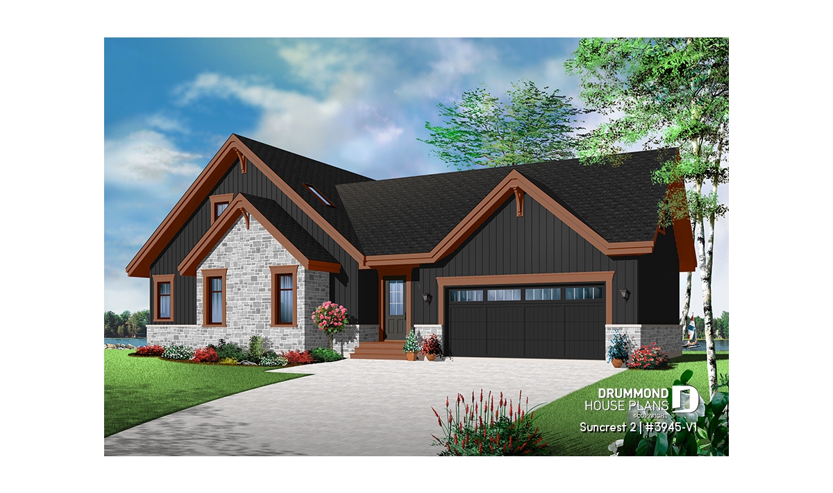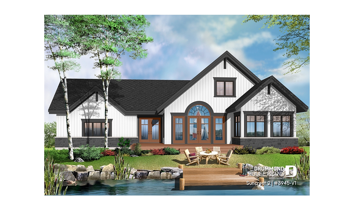 This pretty little bungalow would work equally beautifully as a 4-season getaway or as a charming city home. A trio of cheerful gables puts a charming face forward. An open vestibule conveniently services front, back and garage access.