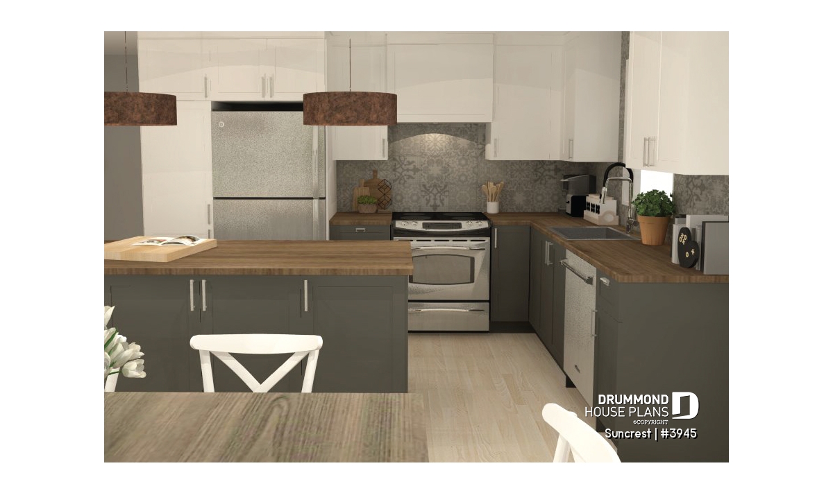 Created in the spirit of plan 2945, this model has been developed for a site with a panoramic view, with its the service entrance at the side that makes the scenery all the more inviting.