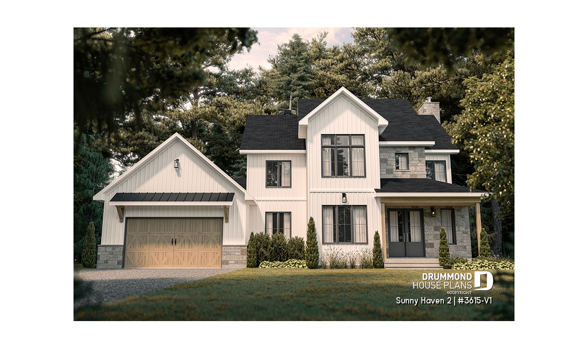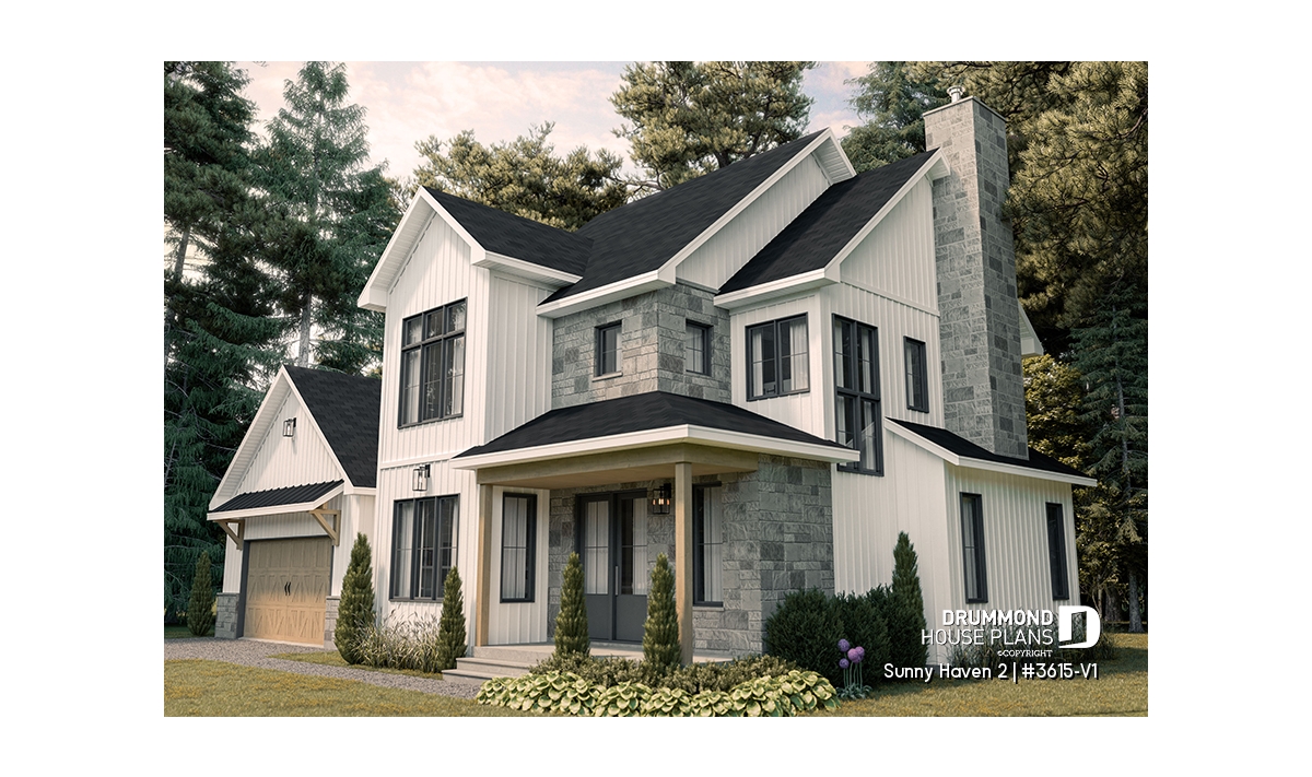 The Sunny Haven 2 (#3615-V1) delivers a refined interpretation of modern Farmhouse design, blending warmth, functionality, and architectural presence. This thoughtfully crafted home plan focuses on everyday comfort while offering a timeless aesthetic that suits a wide range of lifestyles.