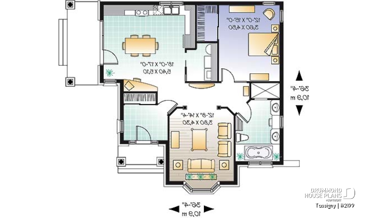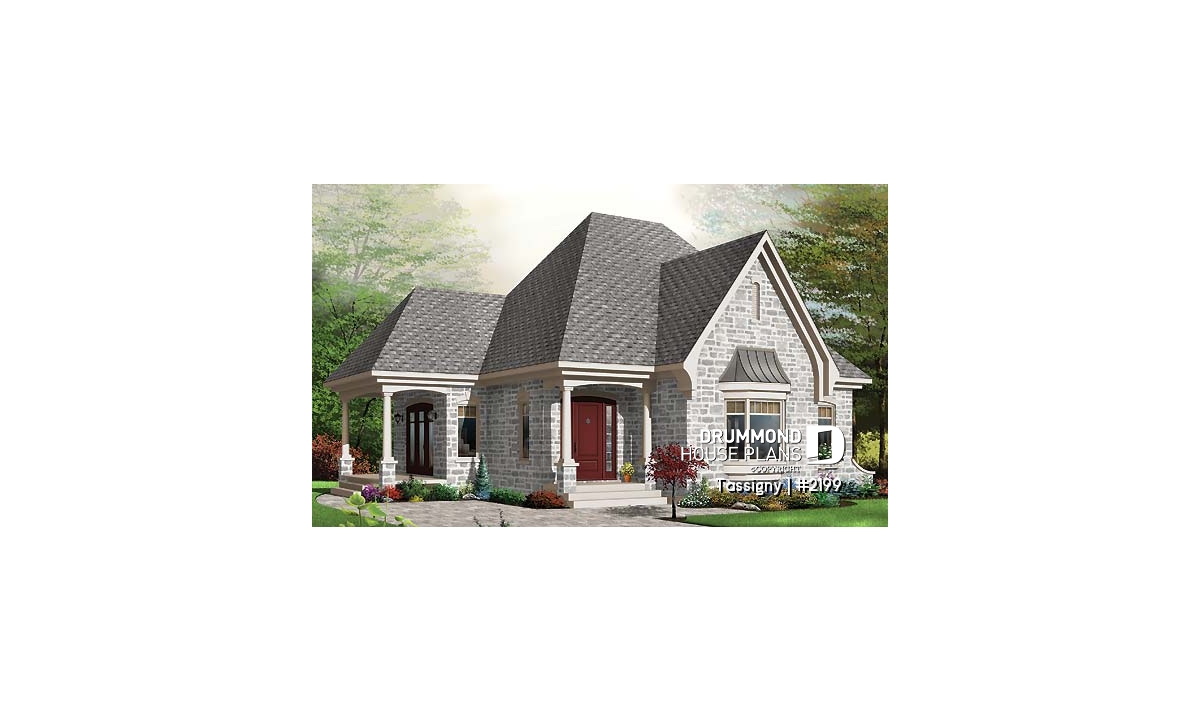 front - BASE MODEL - One-bedroom house plan with charming side sheltered terrace. - Tassigny
