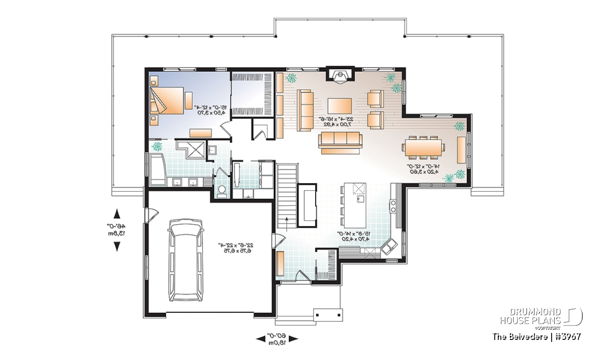Contemporary bungalow with walk-out basement. 9' ceilings throughout the main level and basement access to the back yard. Master suite on main level. Well fenestrated common area with open floor plan and fireplace in the living room. Kitchen with large, central island and covered terrace in the rear. Three bedrooms and a second living room/game room in the basement with walk-out access to the yard.