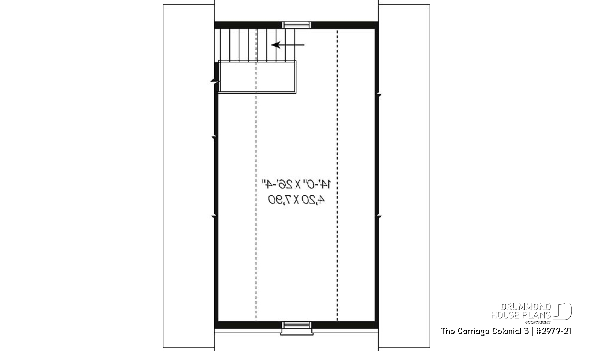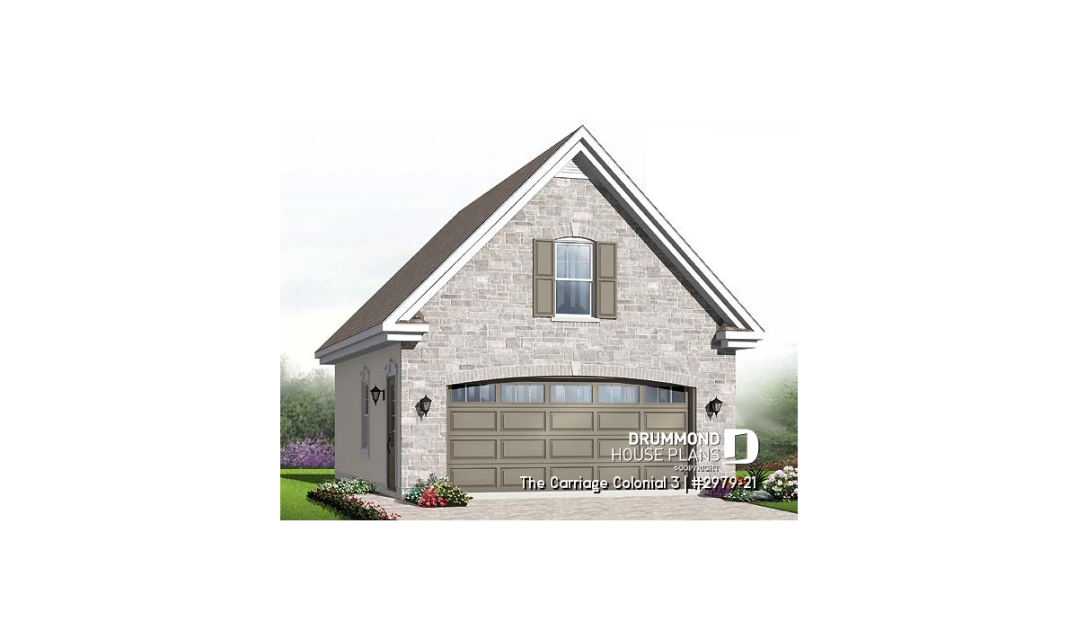 Traditional two-car garage plan with storage on second floor