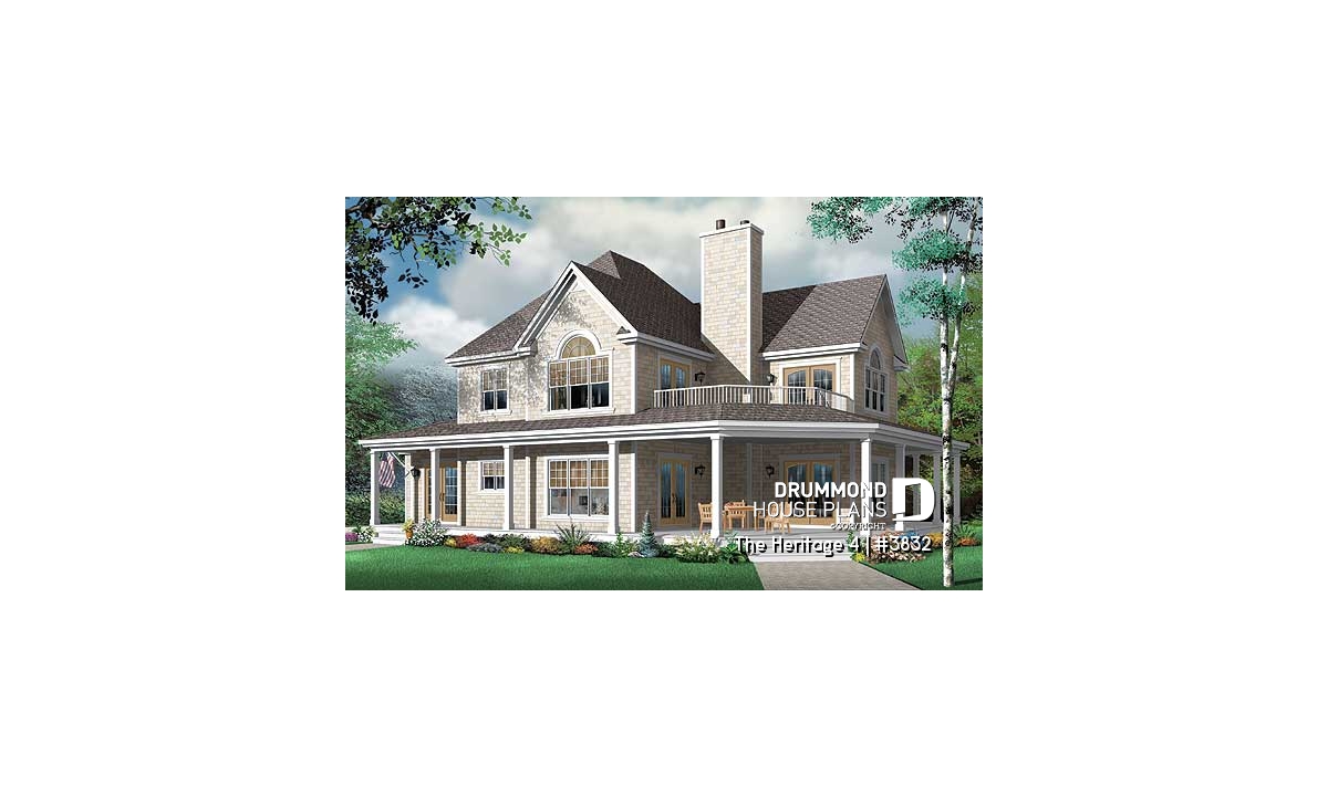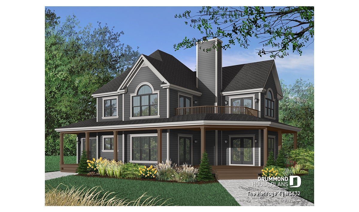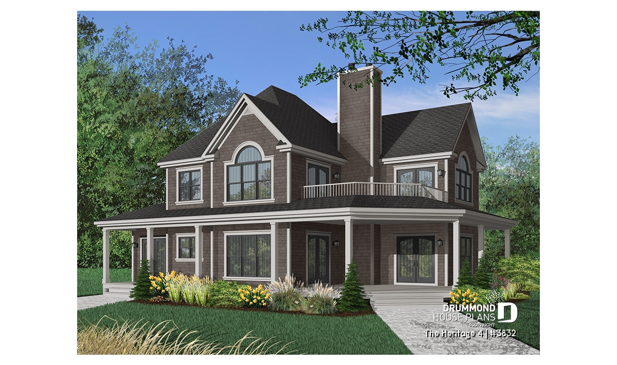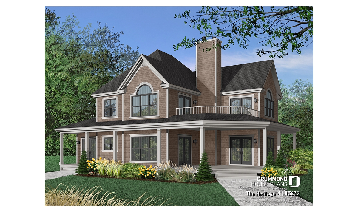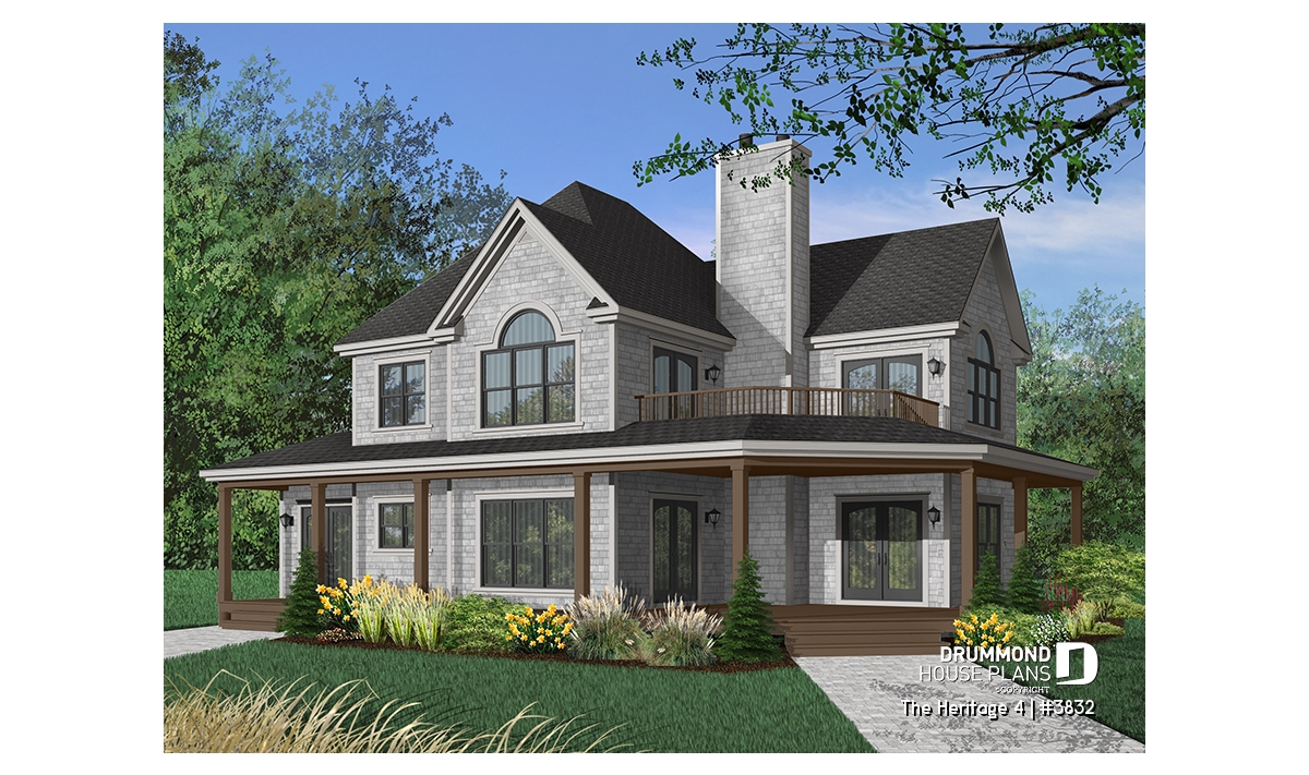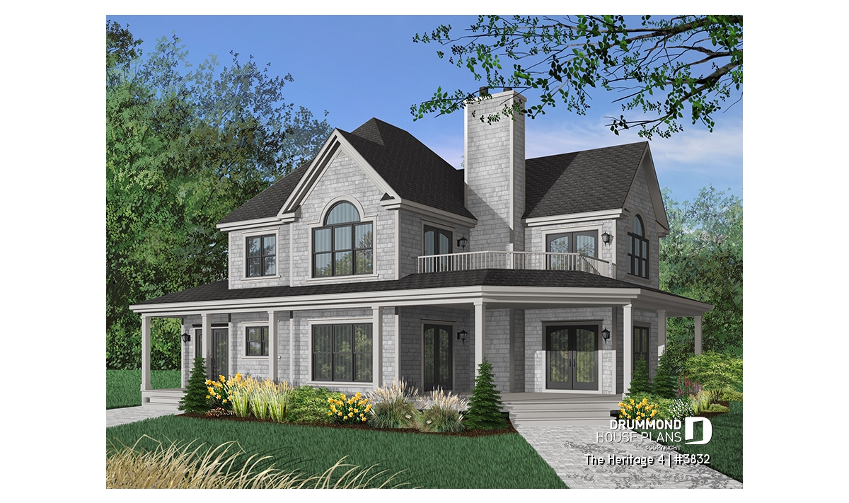 Country house plan, ideal for waterfront lot.