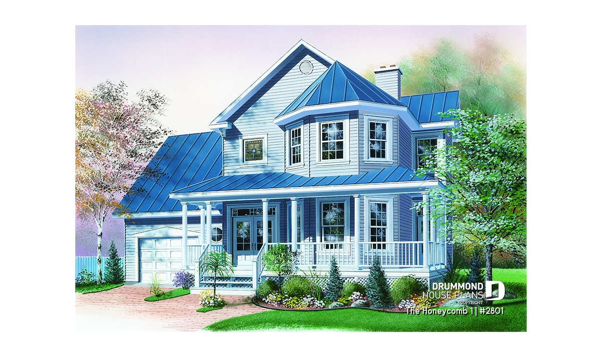 Here, nothing escapes the designer’s eye. A large gallery, linking the front and left façades, assures a covered access to the main entrance as well as to a second entry which opens into the dining room; an impressive turret projects out from the main façade and procures both charm and natural light to both the living room and master suite. A good sized lowered garage, which is often requested in new residential areas, proposes a very attractive bonus space above, which many homeowners will appreciate decorating as they fancy.