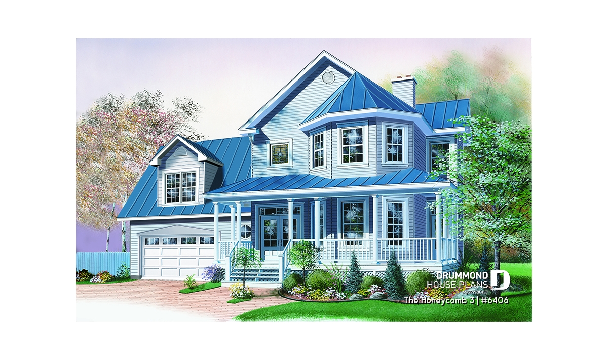 Here, nothing escapes the designer’s eye. A large gallery, linking the front and left façades, assures a covered access to the main entrance as well as to a second entry which opens into the dining room; an impressive turret projects out from the main façade and procures both charm and natural light to both the living room and master suite. A good sized lowered garage, which is often requested in new residential areas, proposes a very attractive bonus space above, which many homeowners will appreciate decorating as they fancy.