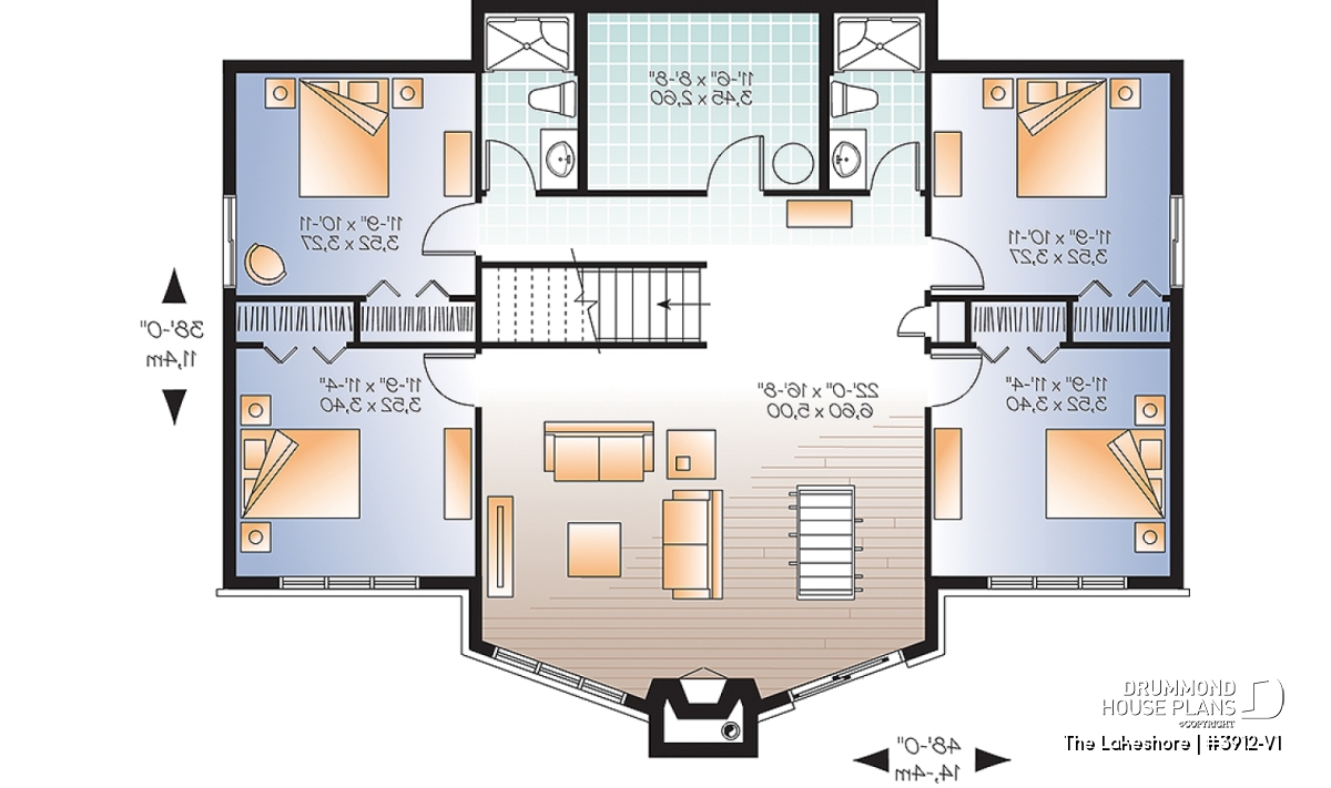 Also on the lower level, two identical shower bathrooms, each with a 51" x 34" shower, ideal for shared use.