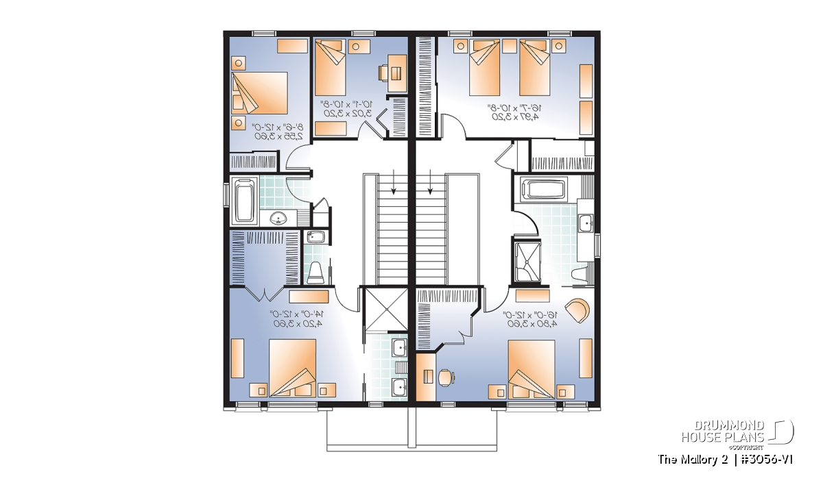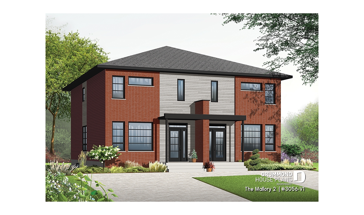 Floorplan options abound with plans 3056 and 3056-V1. Strategic planning of openings allow interchangeable interiors using one of the four layouts. Investors who purchase both plans enjoy very interesting combinations of two or three bedroom units. The units could be built as proposed or easily modified.