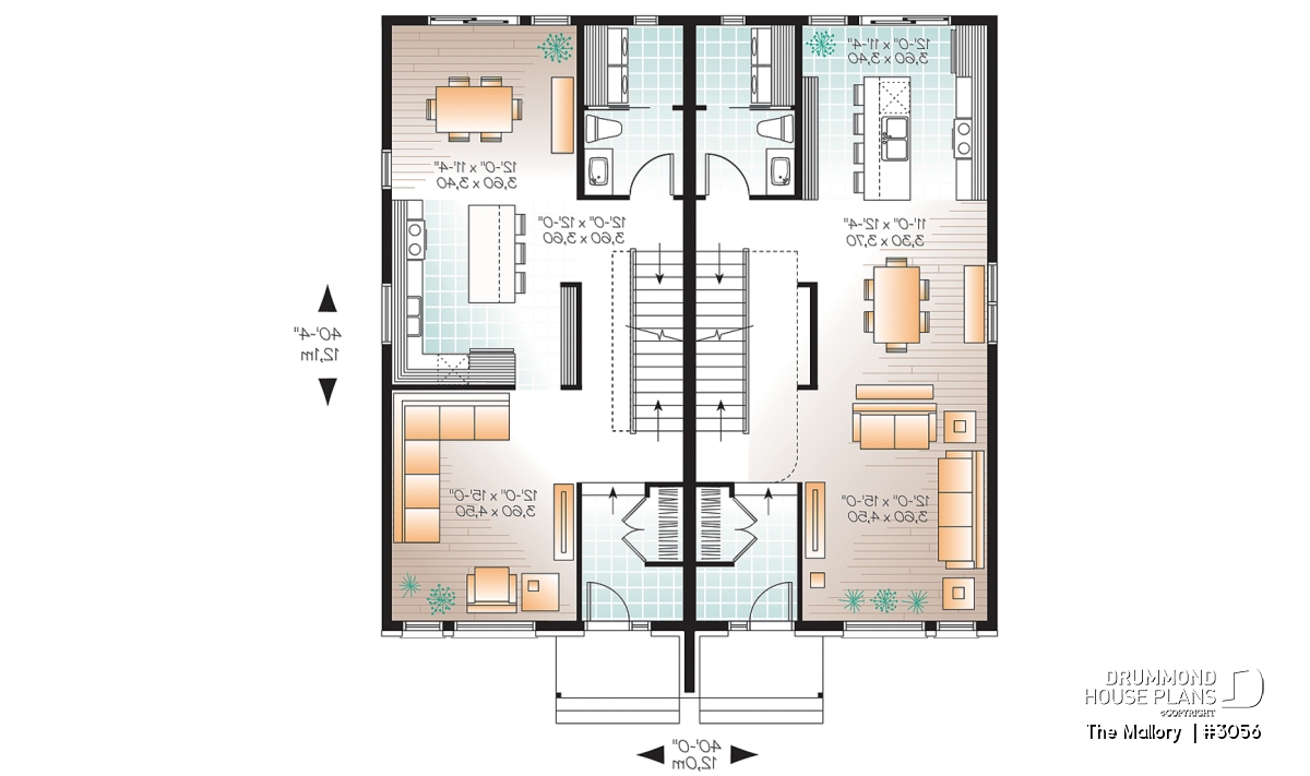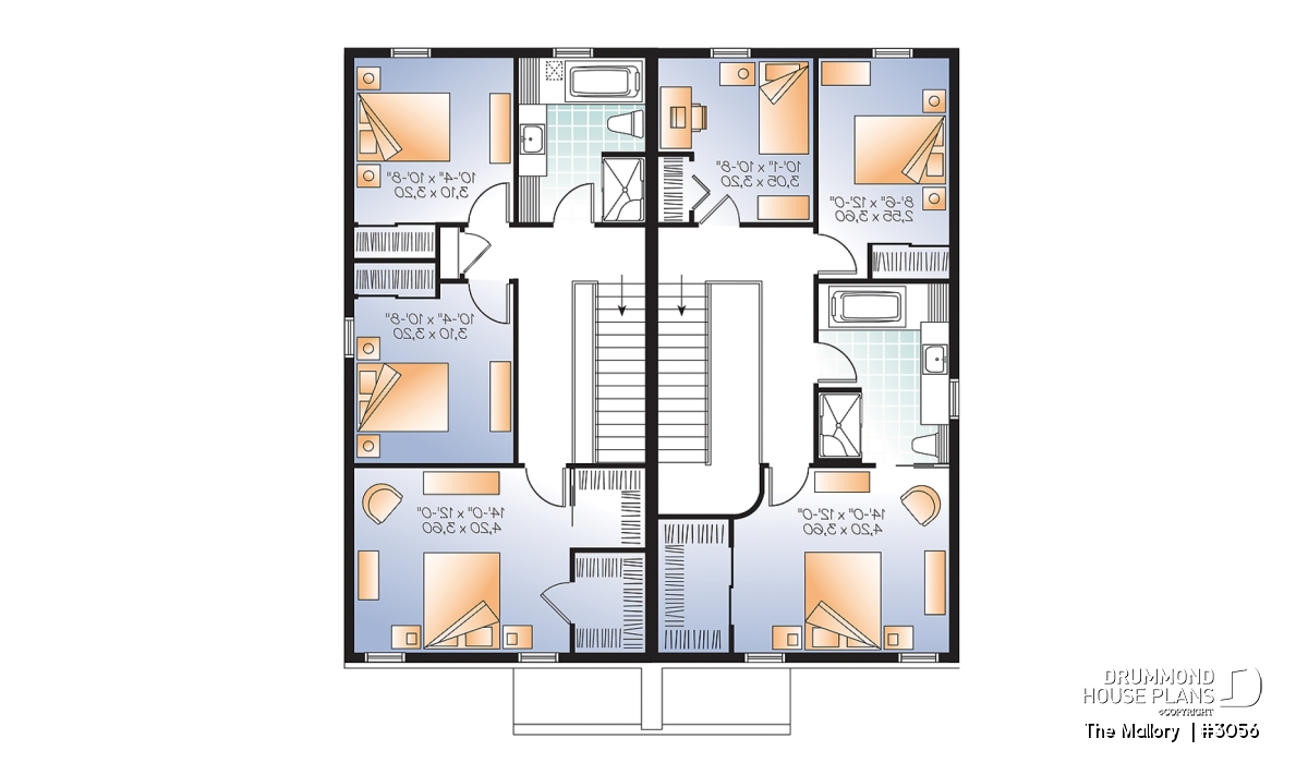 Floorplan options abound with plans 3056 and 3056-V1. Strategic planning of openings allow interchangeable interiors using one of the four layouts. Investors who purchase both plans enjoy very interesting combinations of two or three bedroom units. The units could be built as proposed or easily modified.