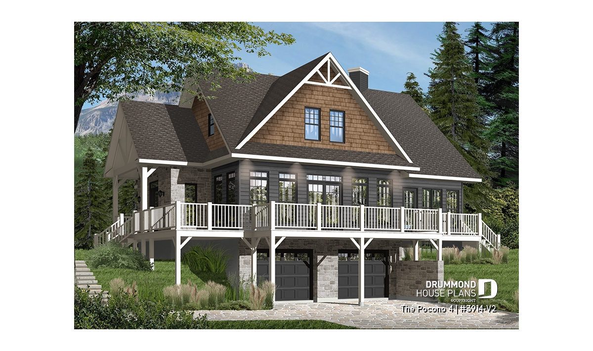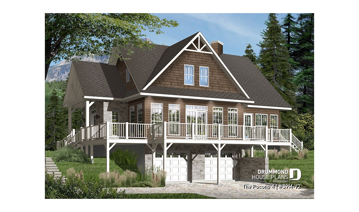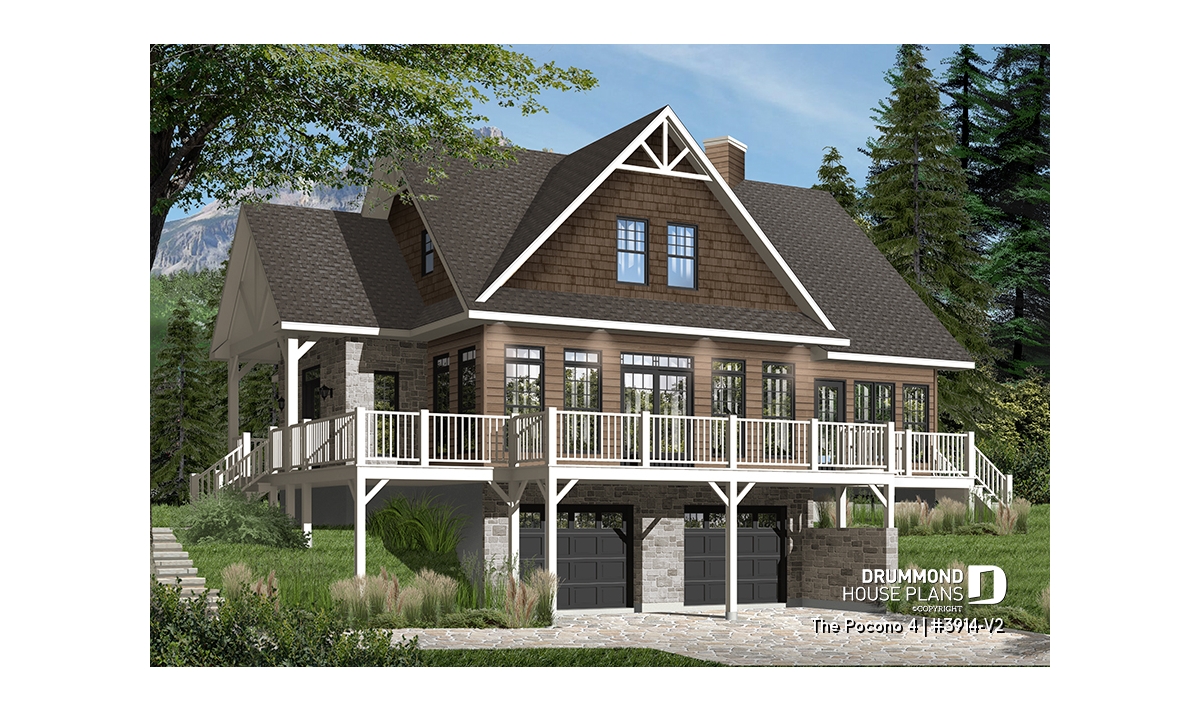 Inspired by this popular series, this superb chalet design offers the same generous deck but with an 11'4" square solarium that is accessible either from the deck or through patio doors from the master bedroom and an extra bedroom for today's larger and blended families.