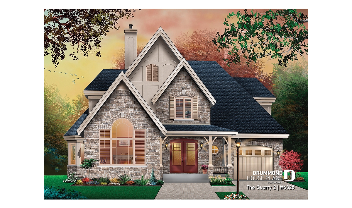 Designed with European spirit with the use of brick/stone on the main façade and partially at the base of the right façade, this blended with rough-cast coating on other facades as well as the gables and dormers, come together for a look that comes together very well. The garage of interesting format includes stairs to the basement and, despite a three way sloping roof, offers a most attractive room above with a dormer and excellent storage.