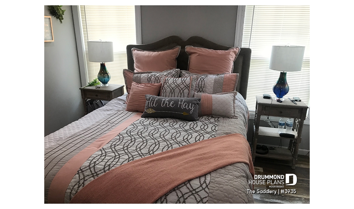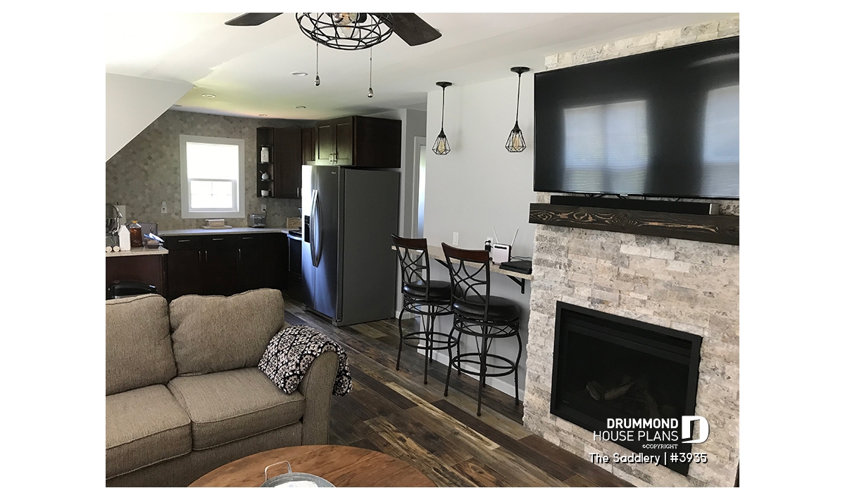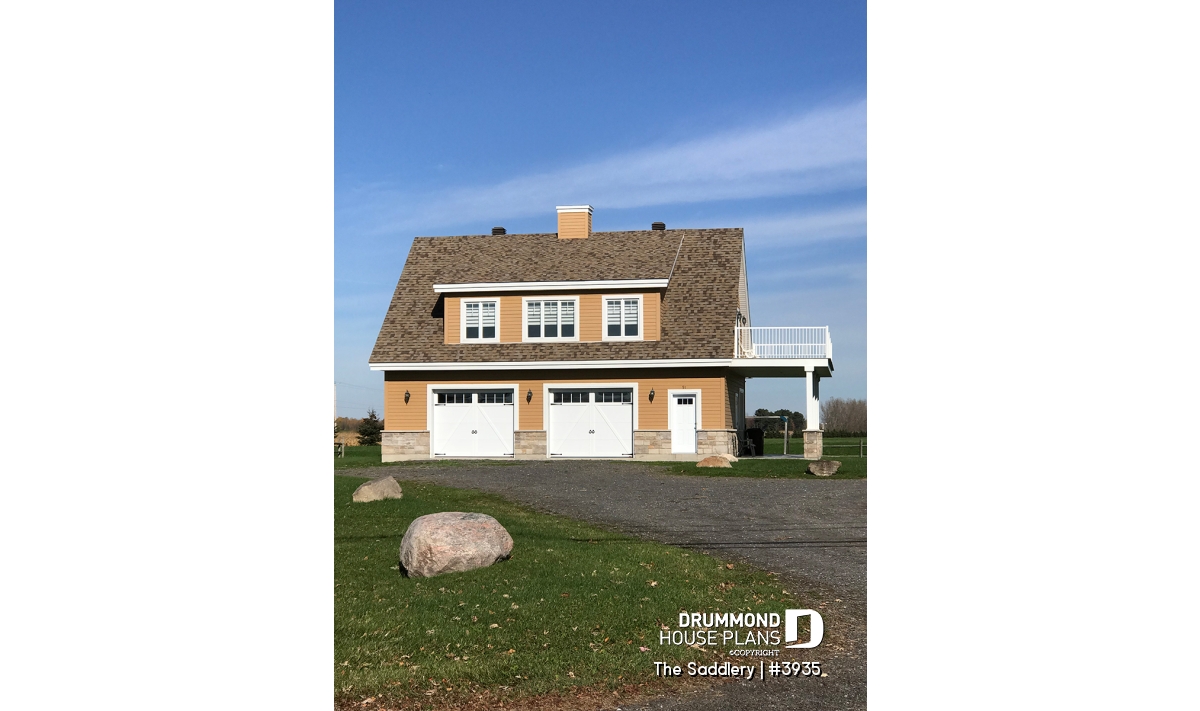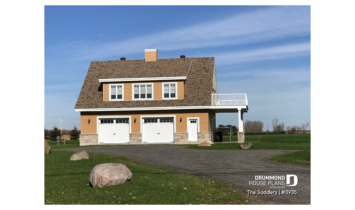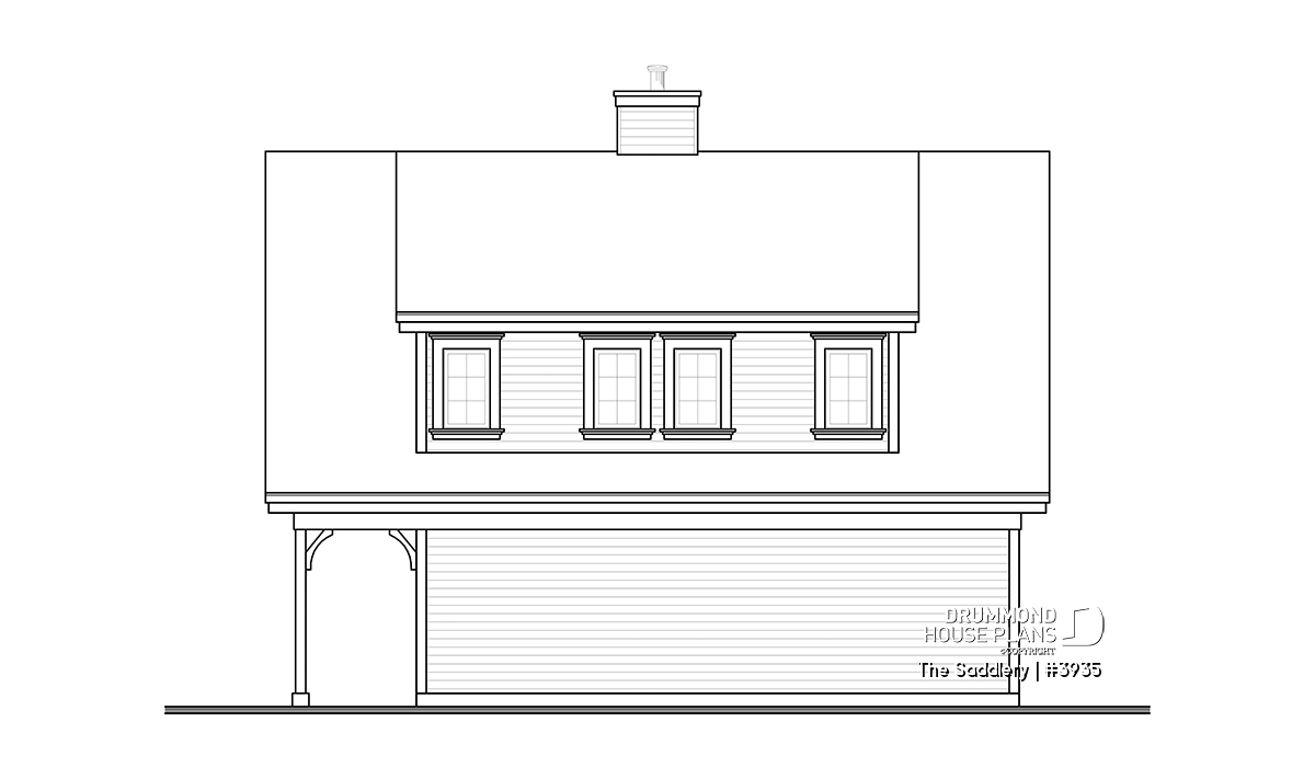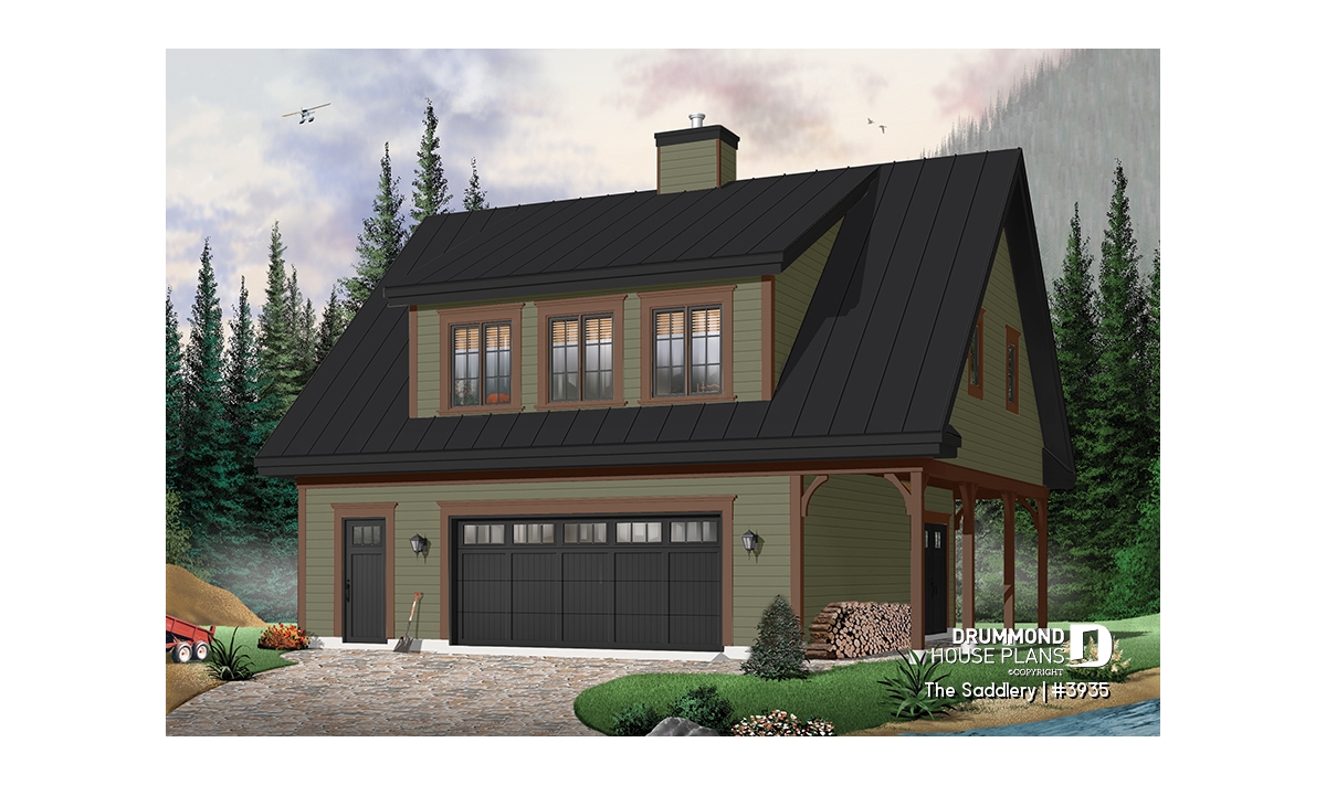 The oversized shed dormer and trio of windows ensure ample light for the suite upstairs. A covered shelter provides enough space to store a few cords of wood safe from the elements and for easy access via the garage.