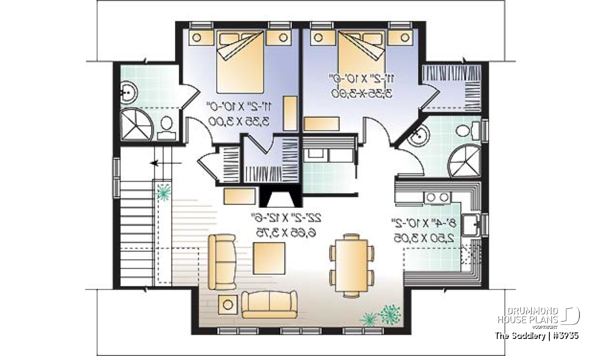 Upstairs, a U-shaped kitchen embraces the family and dining areas which both cozy up by the hearth. Two dreamy bedrooms each have their own walk-ins and shower rooms. To enhance the character, the staircase railing doubles as showcase storage.