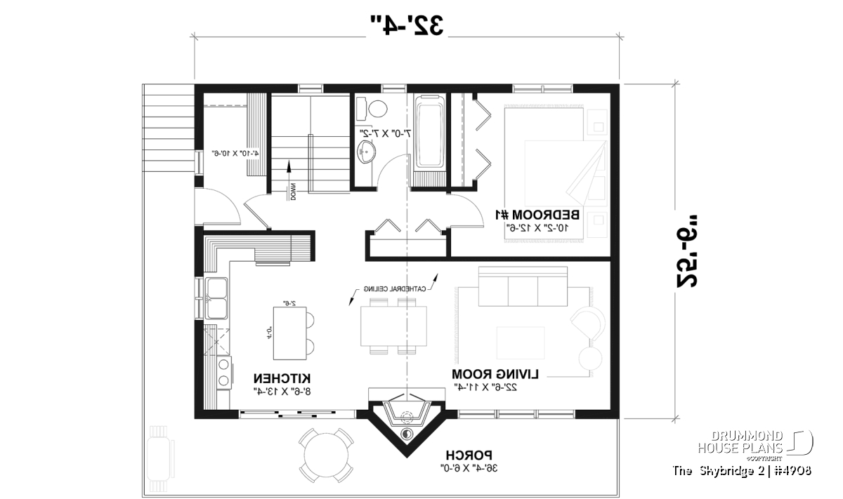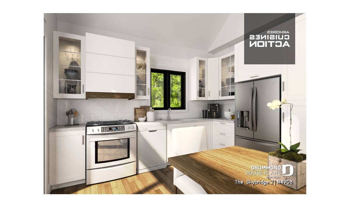 House plan SKYBRIDGE (#4908) offers a country cottage-style house with huge windows and 1,648 square feet.