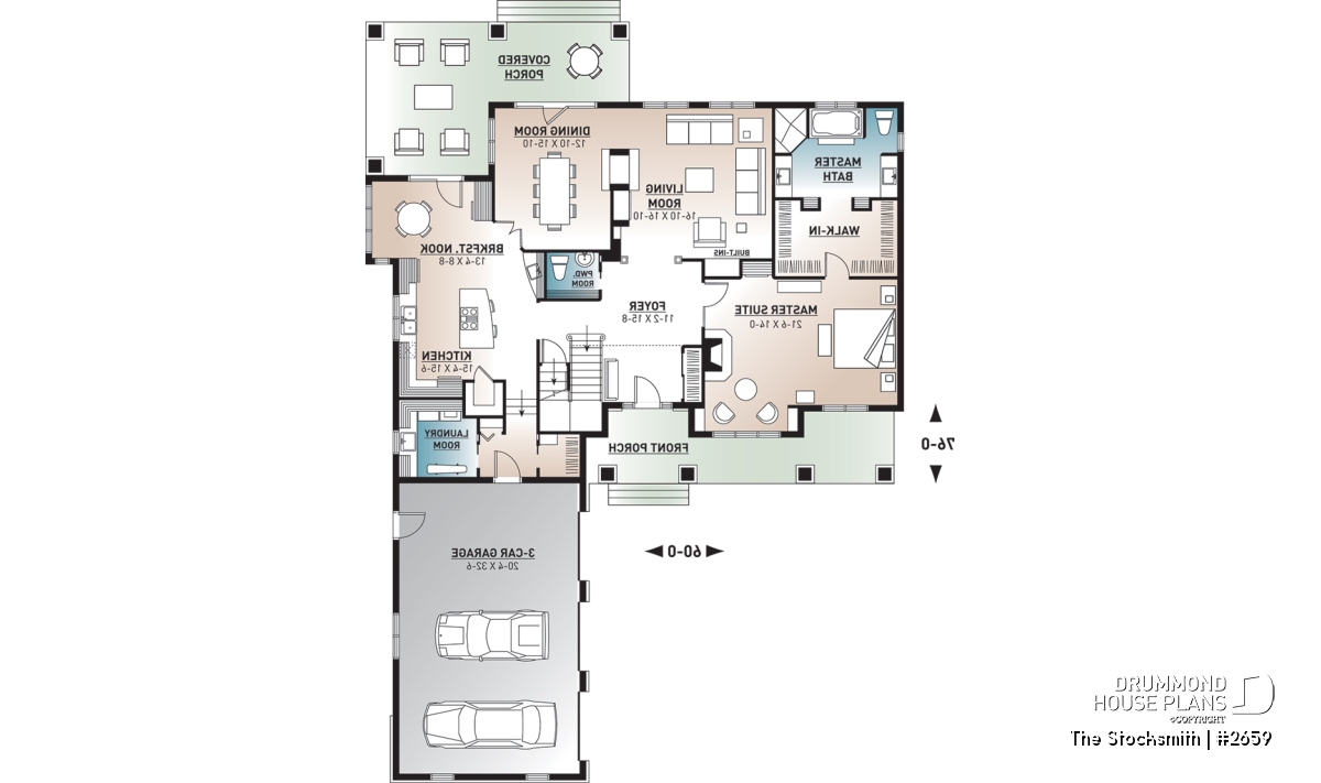 A mudroom and laundry room, both conveniently located near the garage entrance, add even more functionality to the layout.