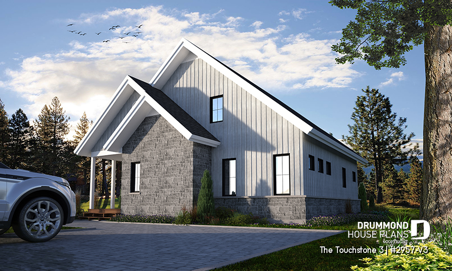 This Nordic chalet-style home plan perfectly combines warm charm with contemporary design. Created to meet the needs of today’s families, it offers thoughtfully planned spaces and a welcoming atmosphere, highlighting durable materials and timeless features. With three spacious bedrooms and 2.5 well-appointed bathrooms, it’s ideal for couples or families who want a functional yet inviting place to call home.