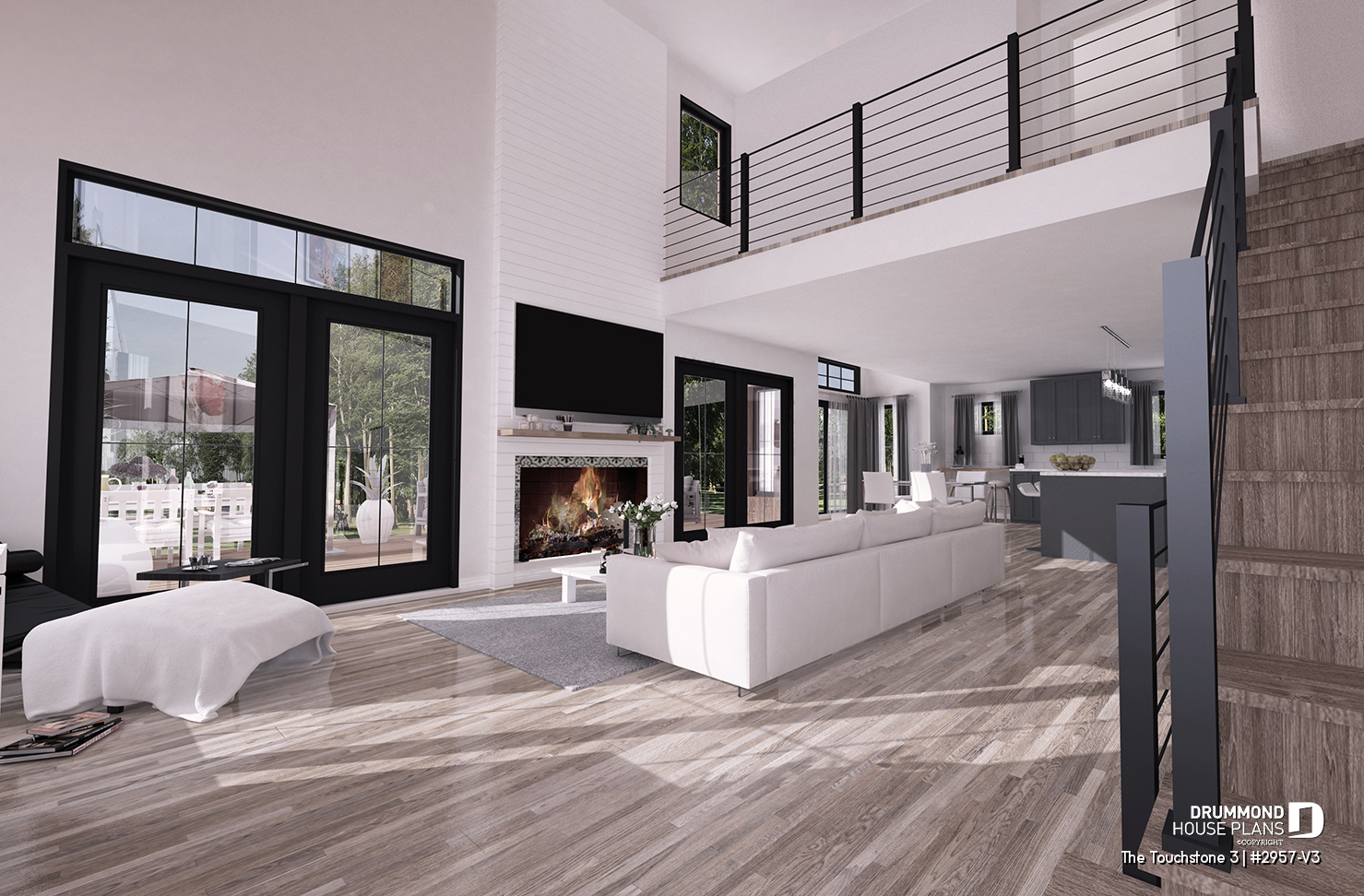 Mezzanine upstairs and cathedral ceiling in the living room for a spectacular, light-filled effect.