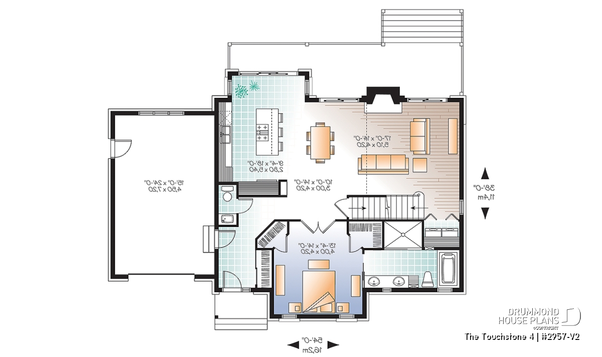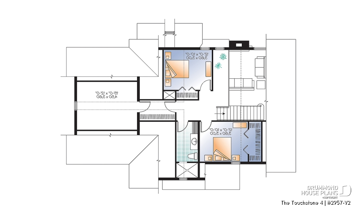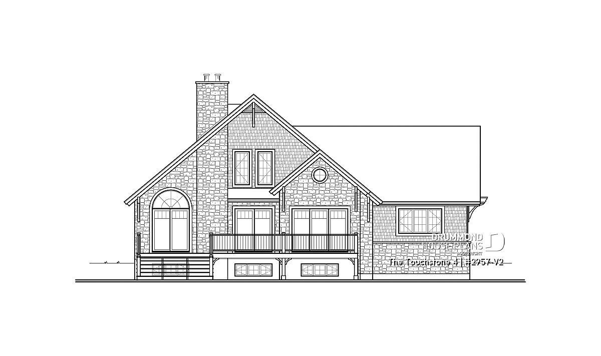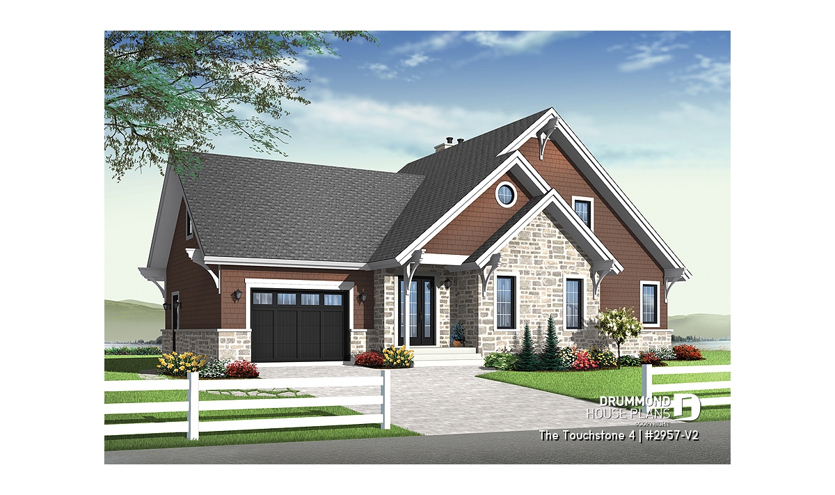 Above the garage, a bright bonus space provides valuable flexibility and can be finished as a fourth bedroom, home office or multi-purpose room. Combining rustic charm, generous daylight and adaptable spaces, THE TOUCHSTONE 4 (#2957-V2) delivers a thoughtful design that connects architecture with nature and evolving lifestyle needs.