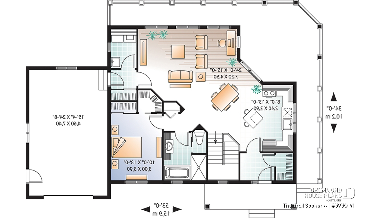 Upon its arrival on the market, plan 3900 was automatically popular. While originally a vacation-style plan, we frequently received requests for the addition of an attached garage and finished basement with two additional bedrooms. We are pleased to offer this alternate plan 3930-V1 in response to your requests.