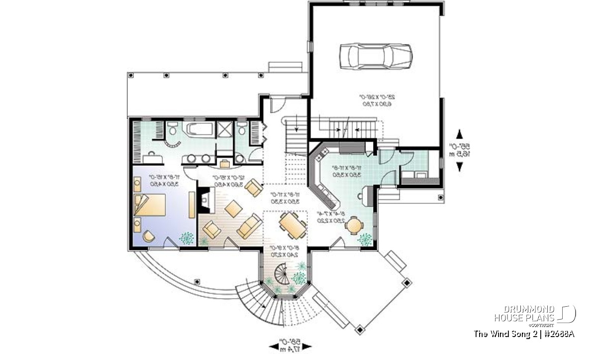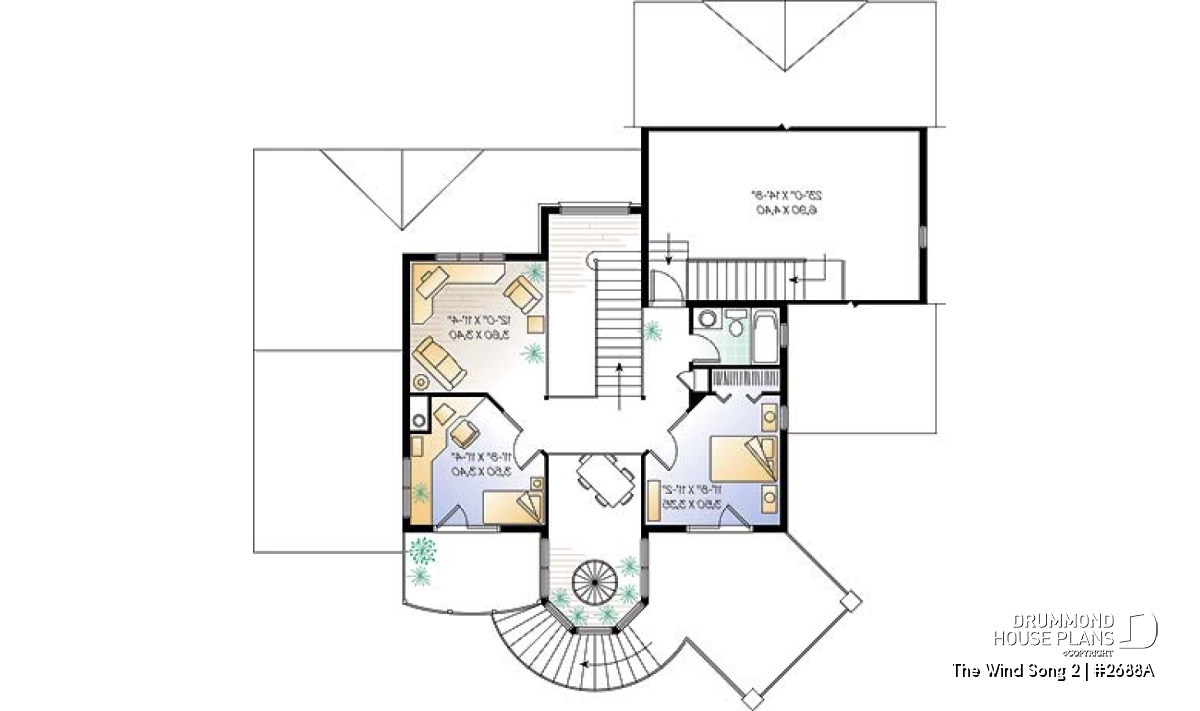 Original two-story atrium with a spiral staircase.