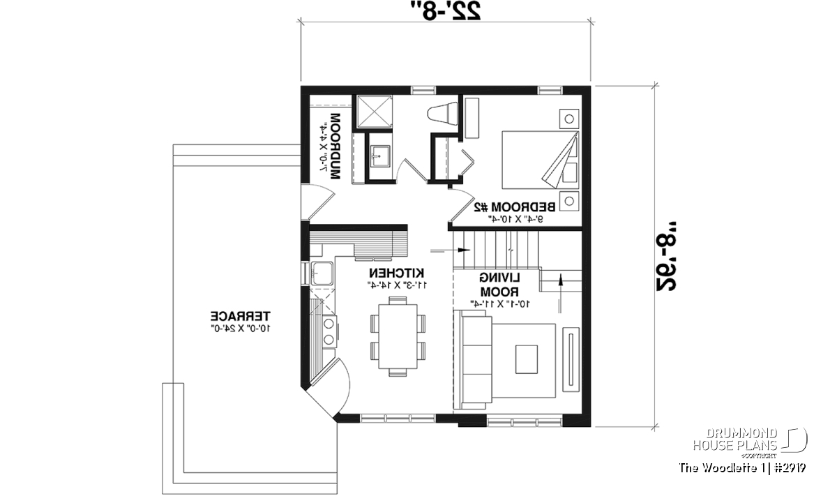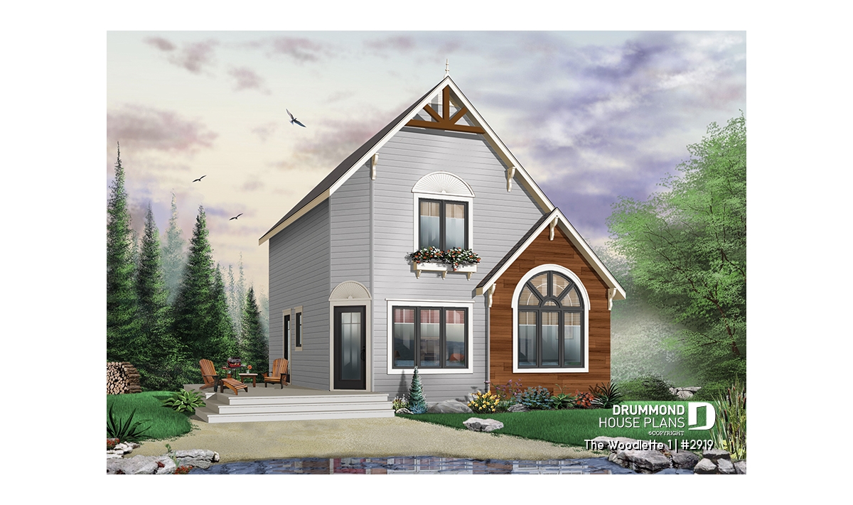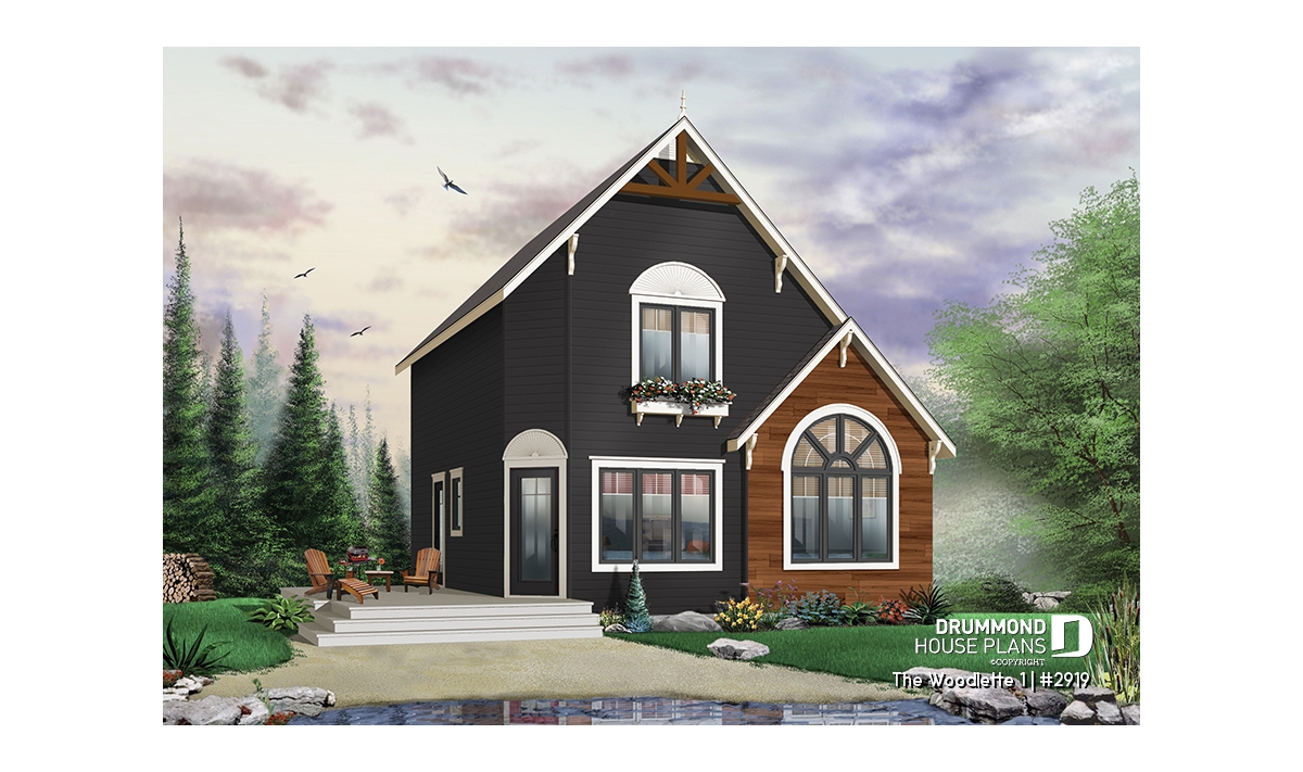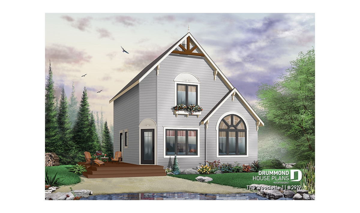 2 to 3 bedroom affordable modern style house plan, lots of natural light, cathedral ceiling + mezzanine
