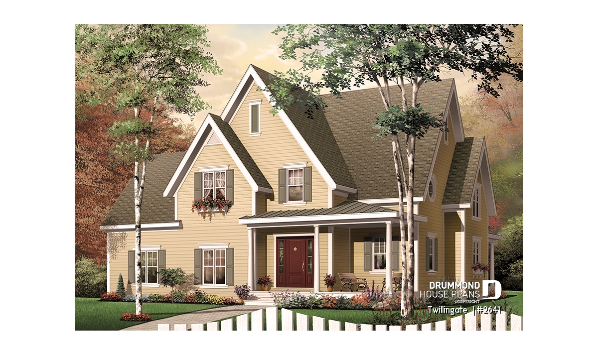 This cottage-style charmer plays down the garage presence with discreet side access. Within, the floor plan includes 3 planned bedrooms with the feasibility of 2 more in the large bonus space above the garage.